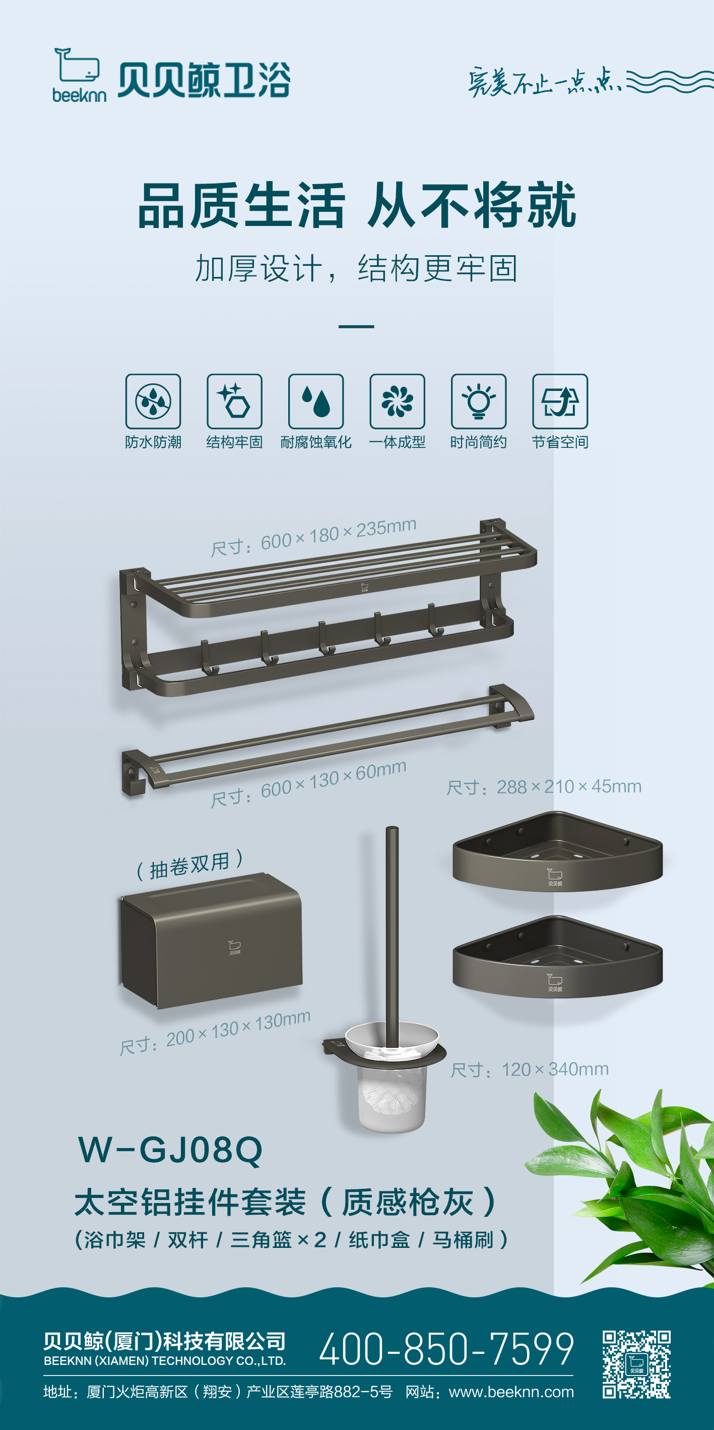 WGJ08Q/挂件套装/浴巾架+双杆+三角篮2+纸巾架+厕刷架/喷涂枪灰