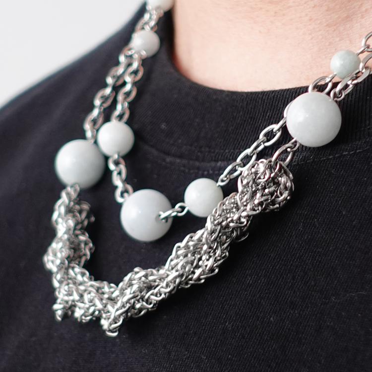 made by dizon 国风人造玉石锆石编织项链套装 手工钛钢男项链