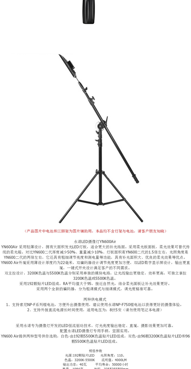 永诺 LED摄像灯YN600Air 直播补光灯常亮灯
