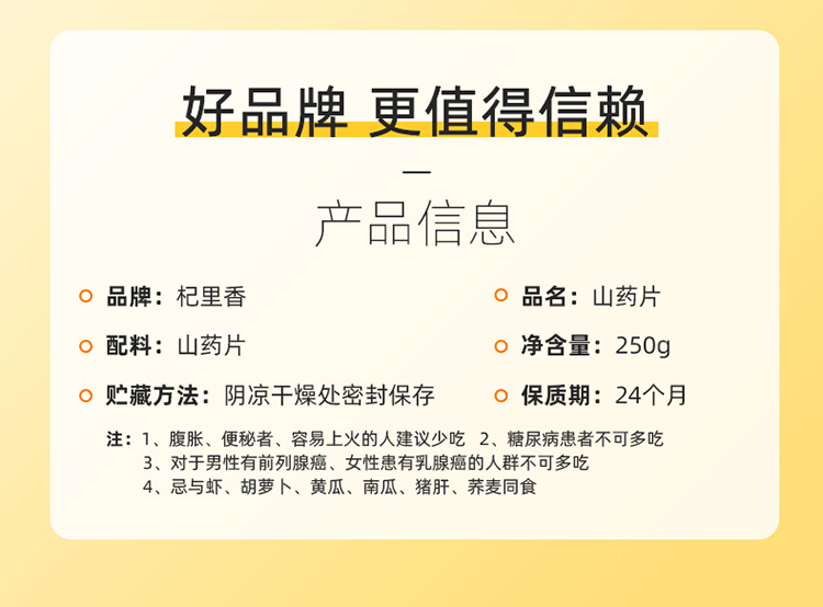 【杞里香河南山药片250g】山药干怀山片淮山药片粉 精选河南地道产地