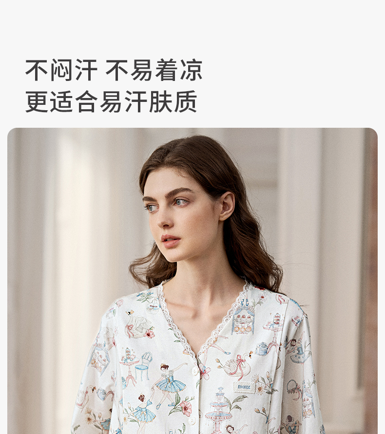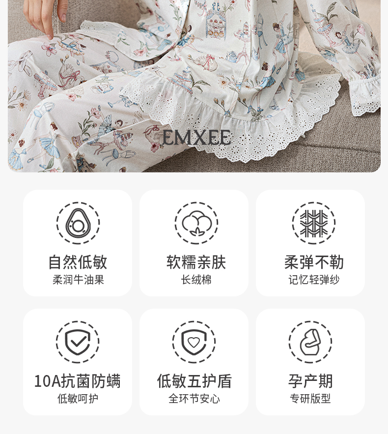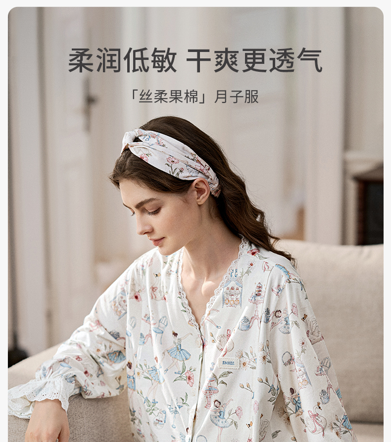 【家居服专场】嫚熙夏季薄款牛油果丝柔果棉纯棉睡衣哺乳孕妇产后月子服家居服