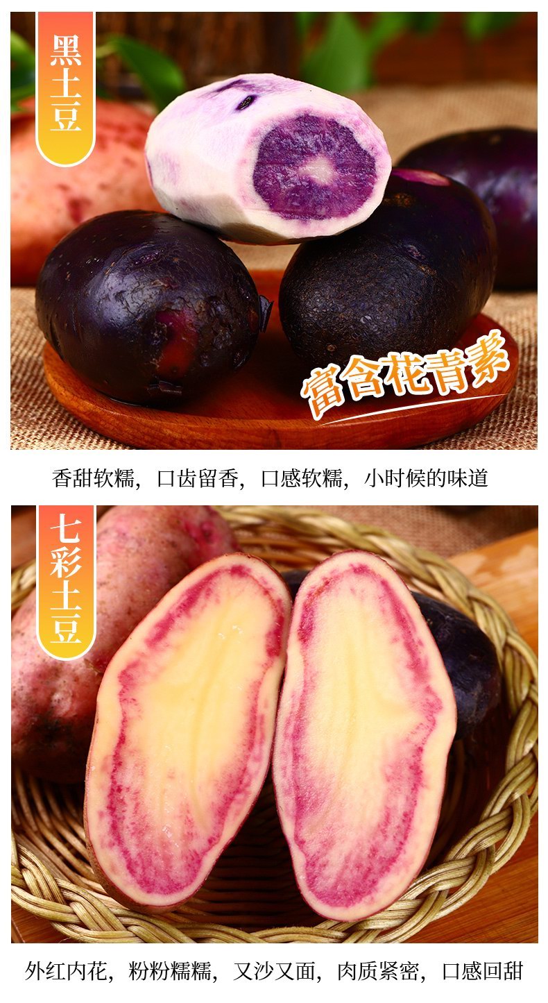 自带光环的云南高山三拼土豆(七彩土豆+黄心土豆+黑土豆)