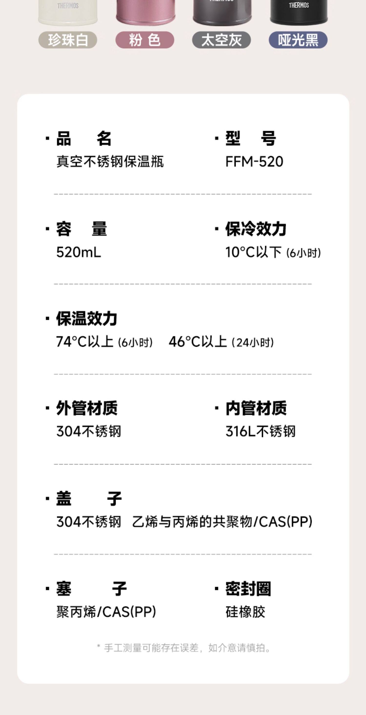 膳魔师316L不锈钢高真空不锈钢保温瓶保温杯520ml