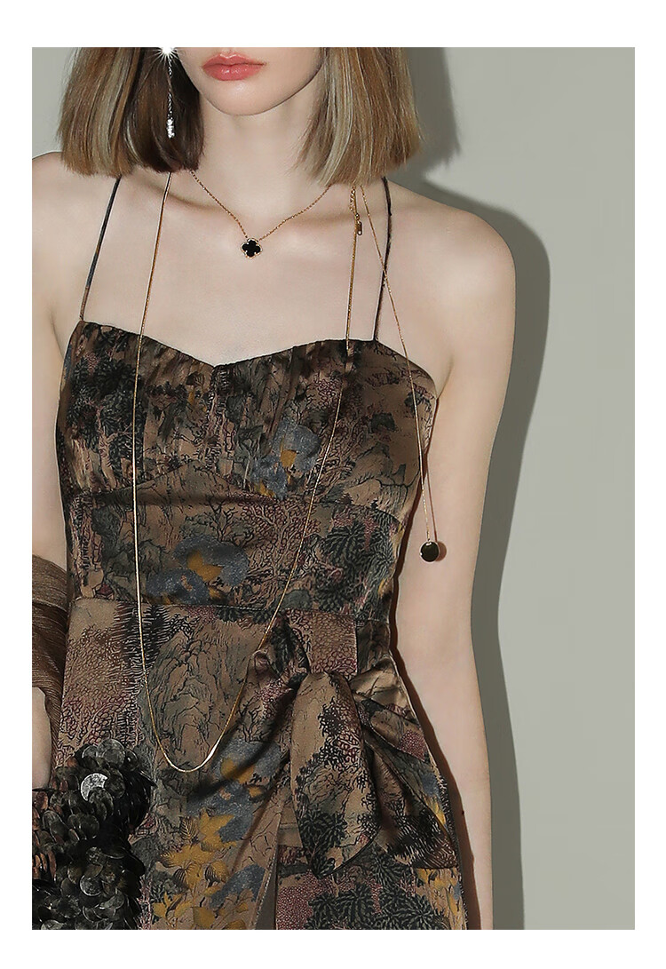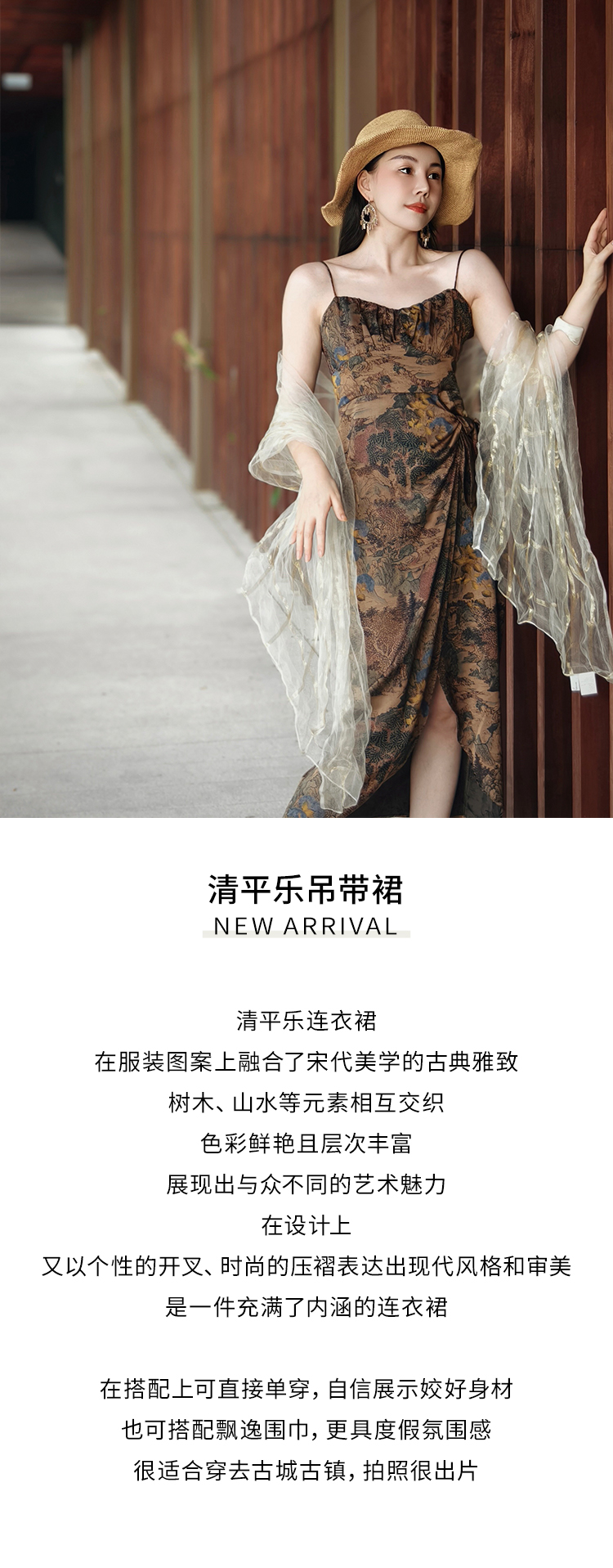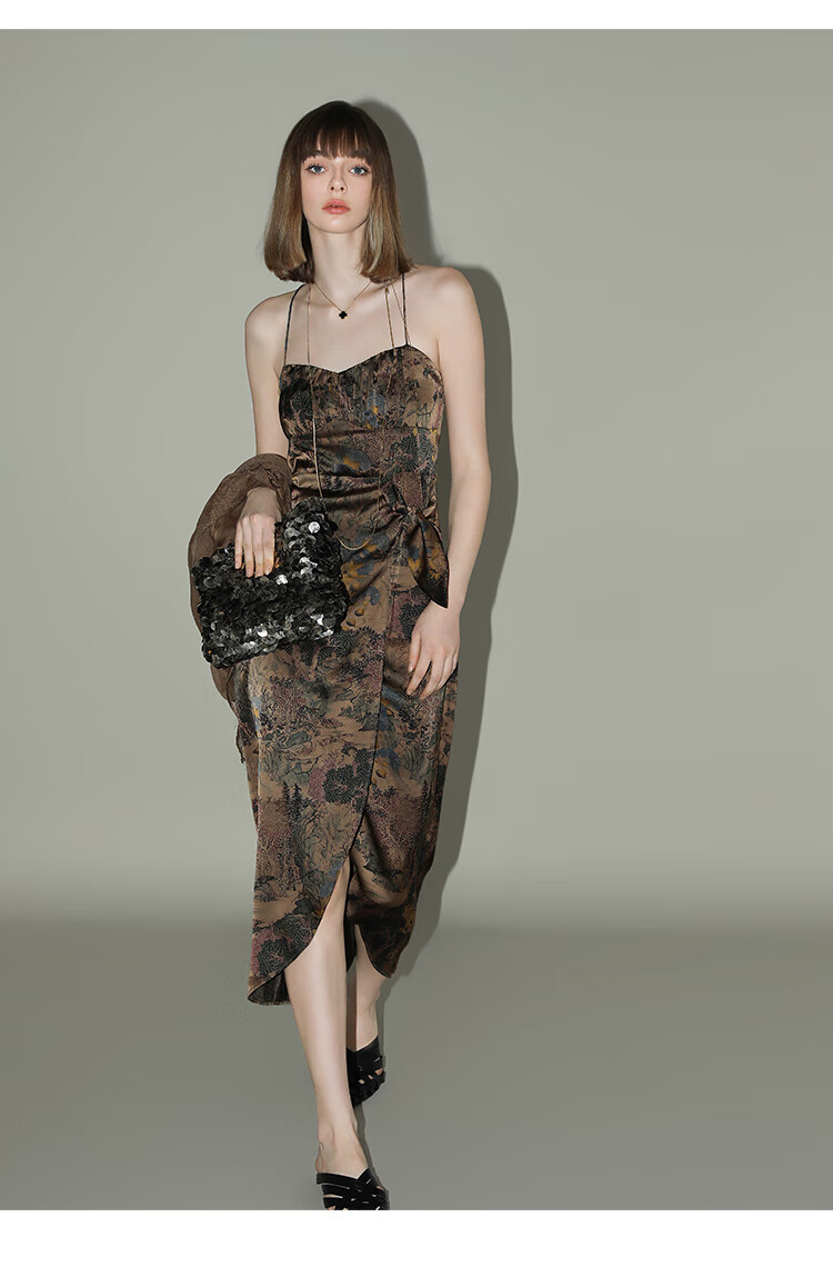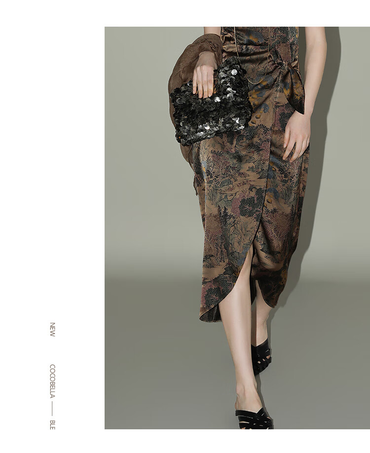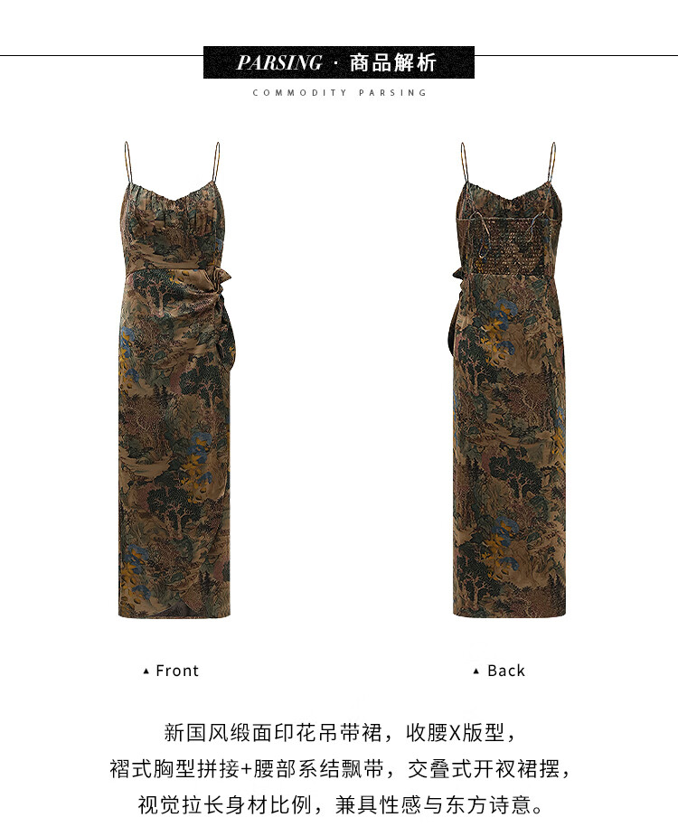 【柔见】COCOBELLA轻奢新国风缎面印花吊带裙度假风系带连衣裙FR0012