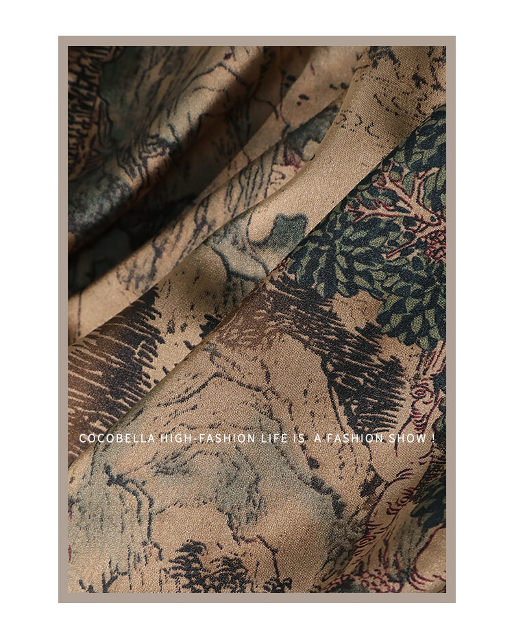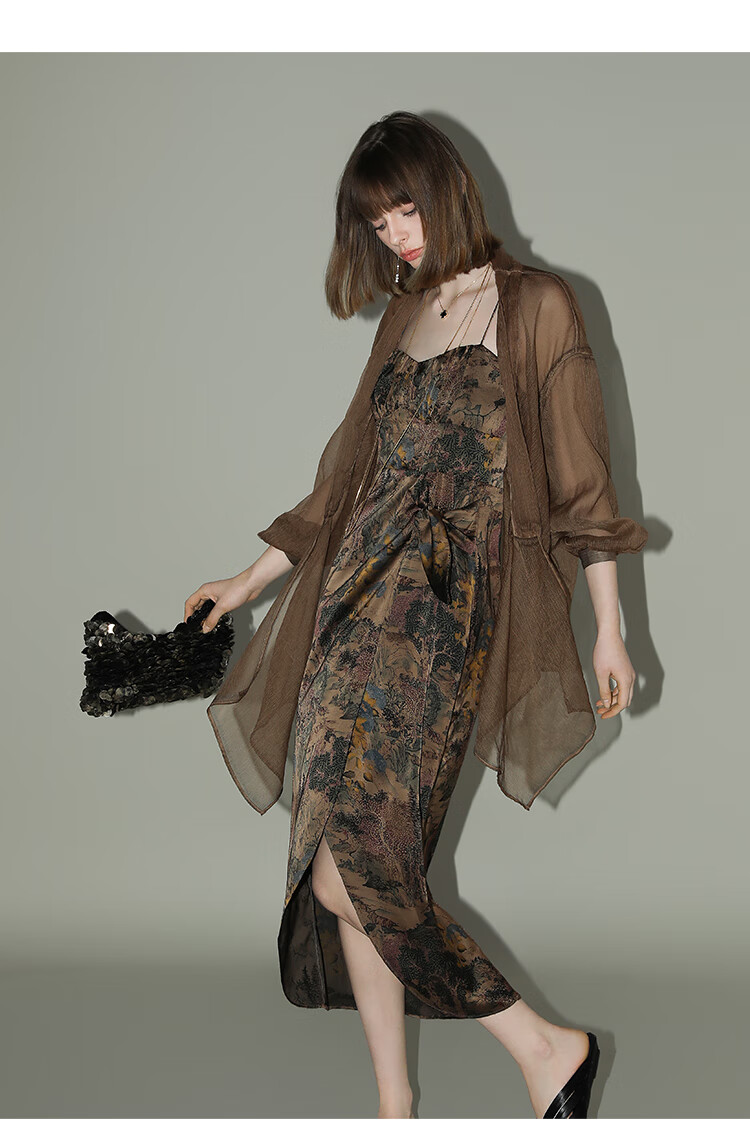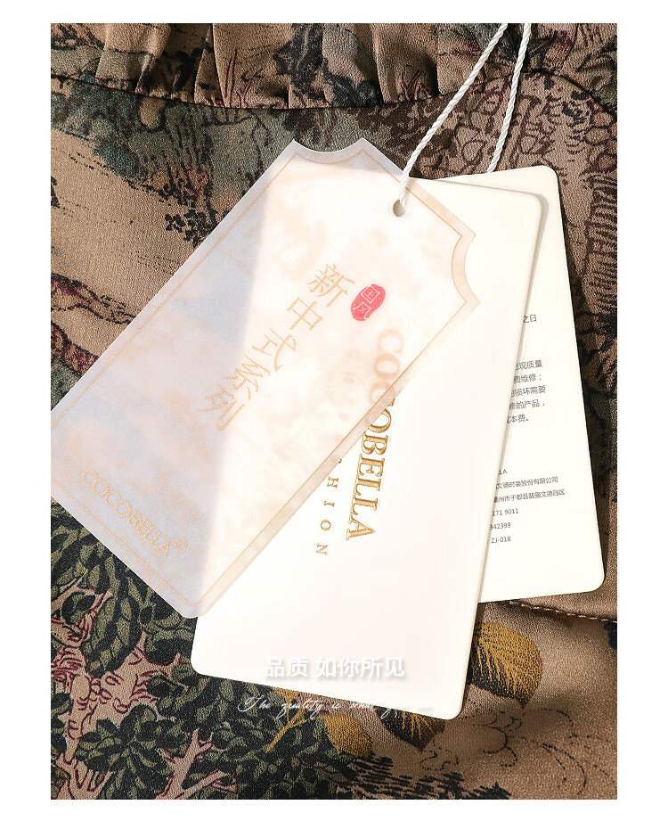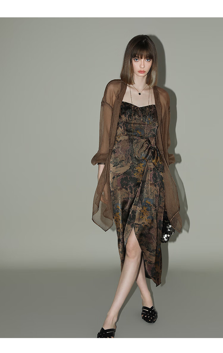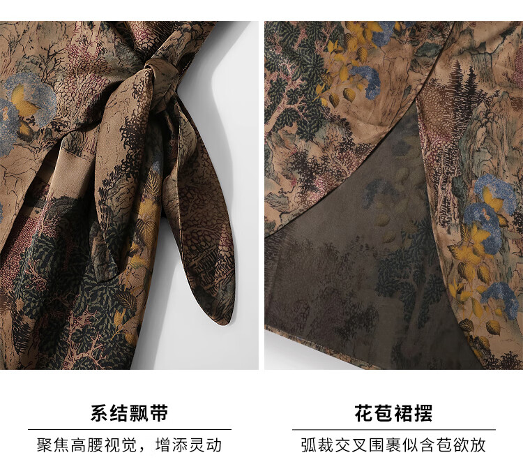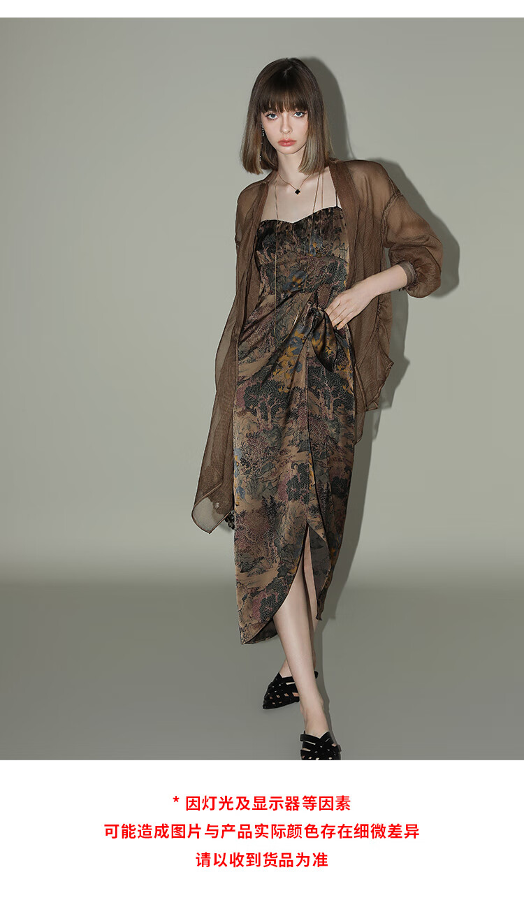 【柔见】COCOBELLA轻奢新国风缎面印花吊带裙度假风系带连衣裙FR0012