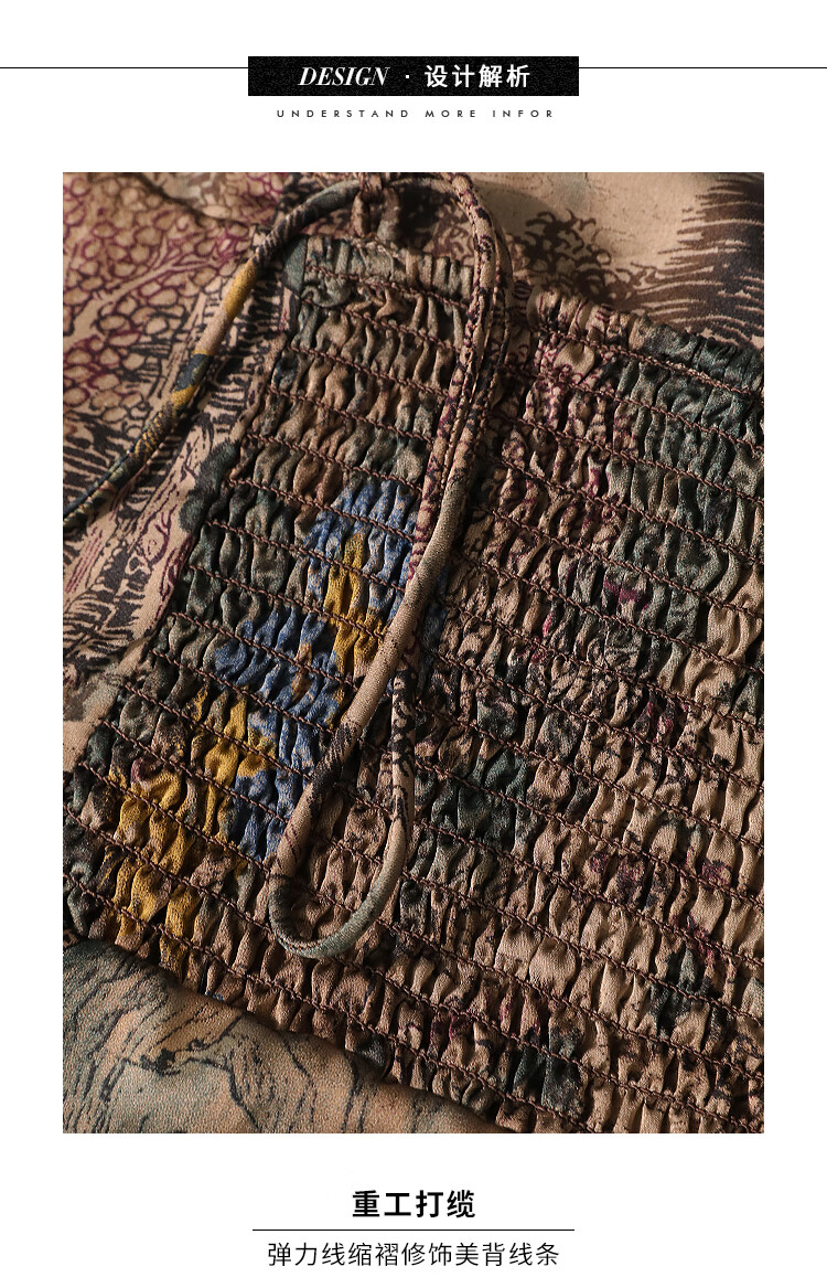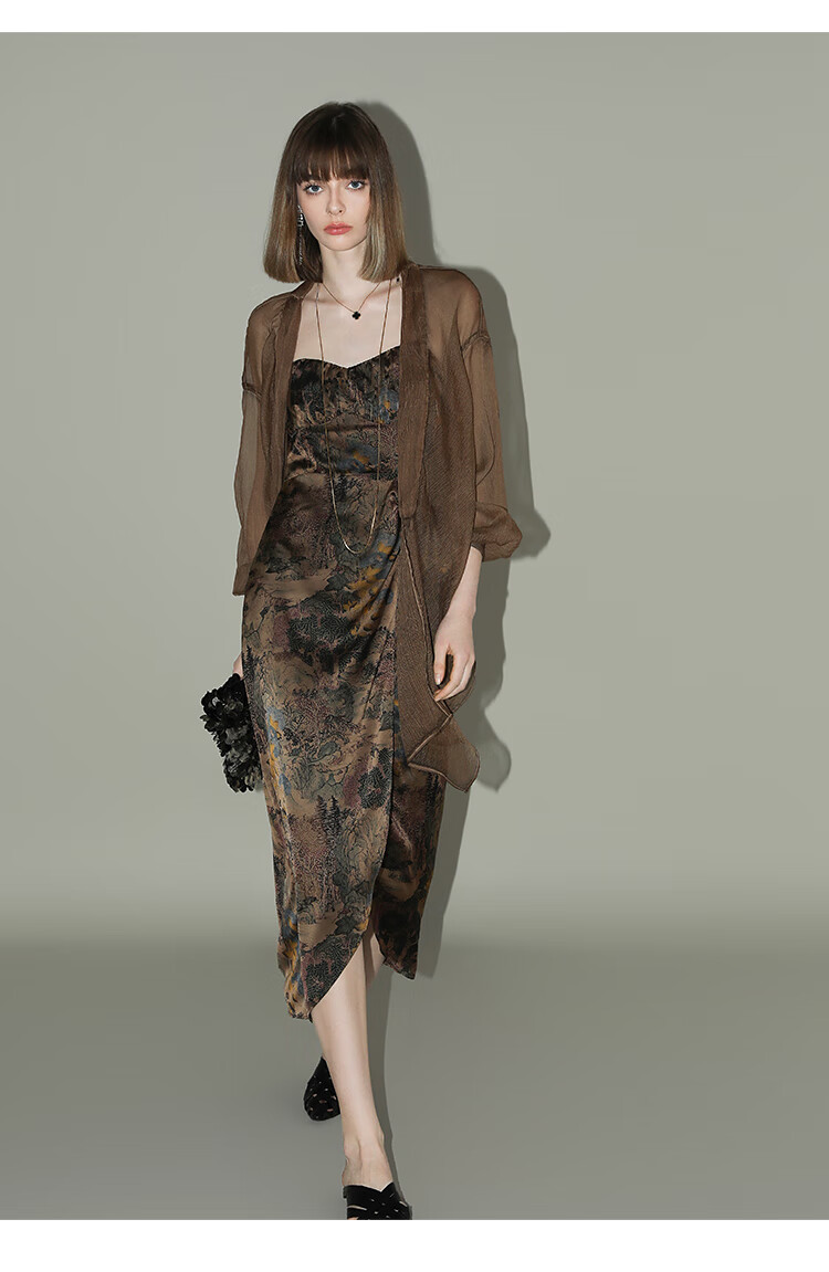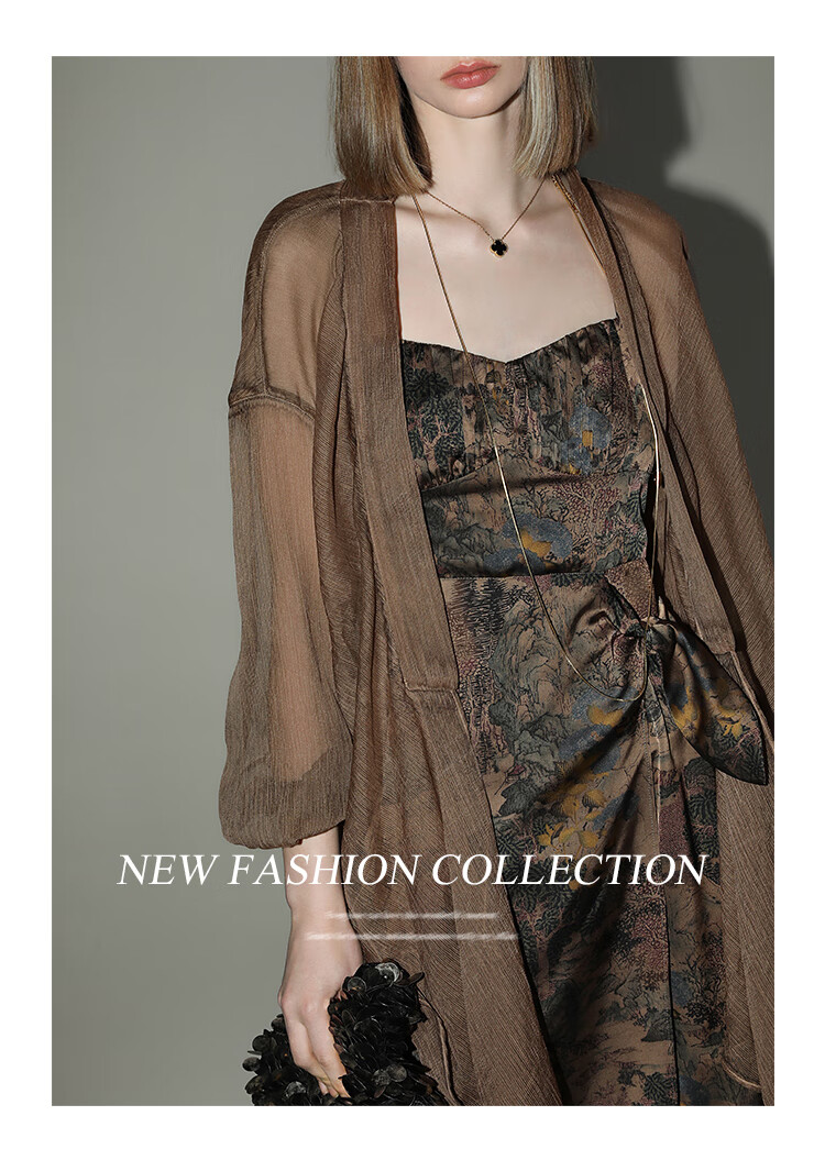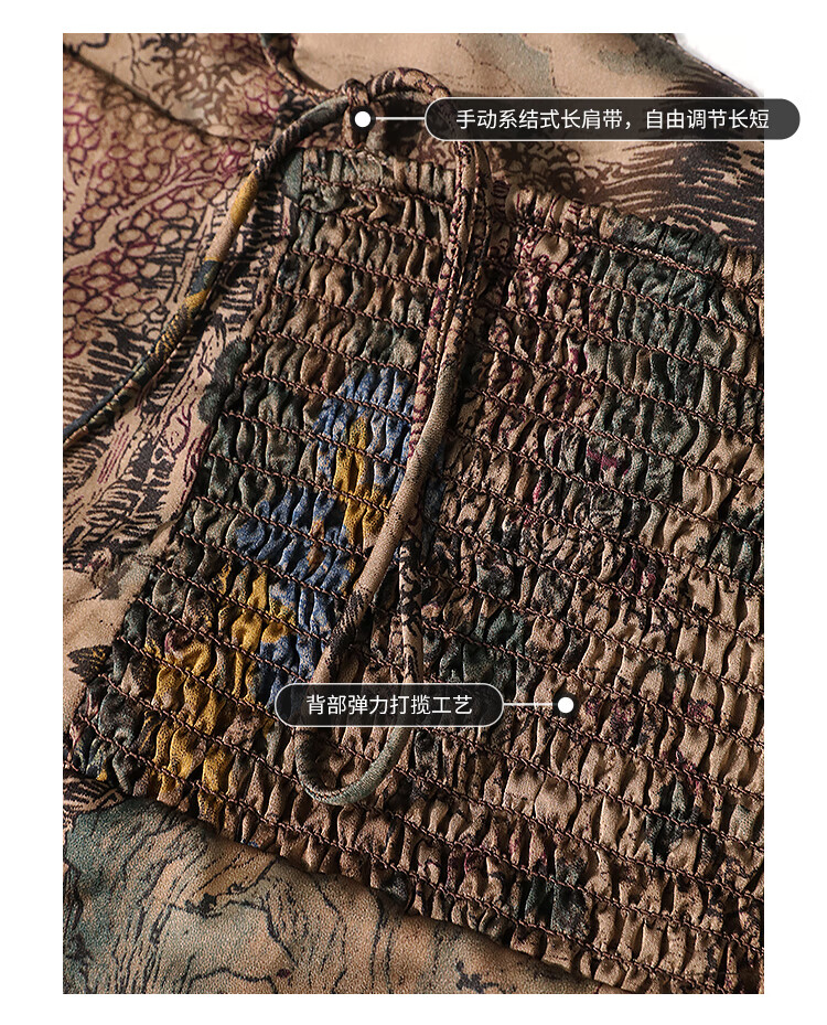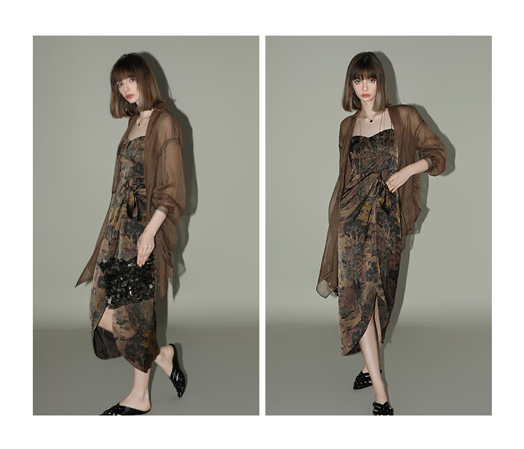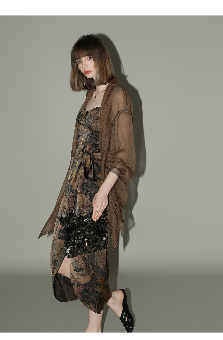 【柔见】COCOBELLA轻奢新国风缎面印花吊带裙度假风系带连衣裙FR0012