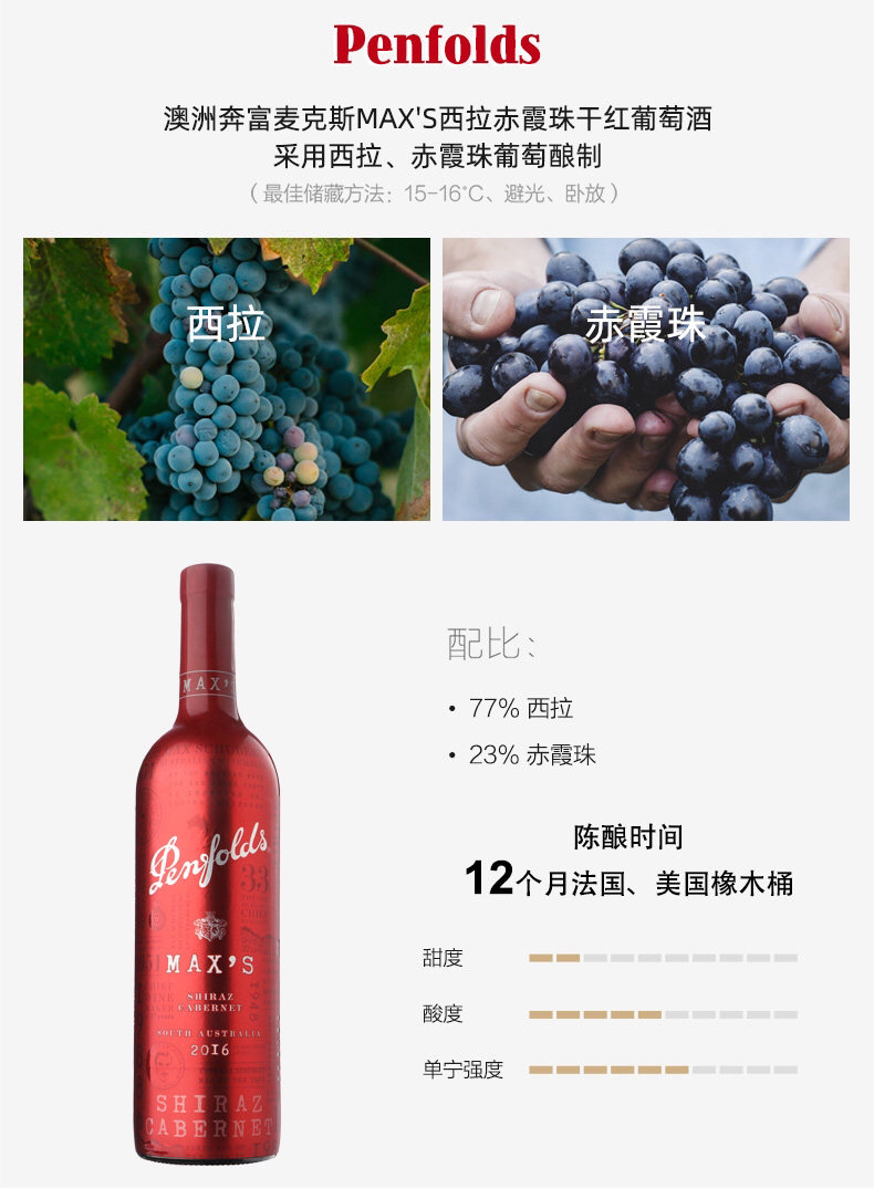 奔富麦克斯经典干红葡萄酒14.5度 750ML