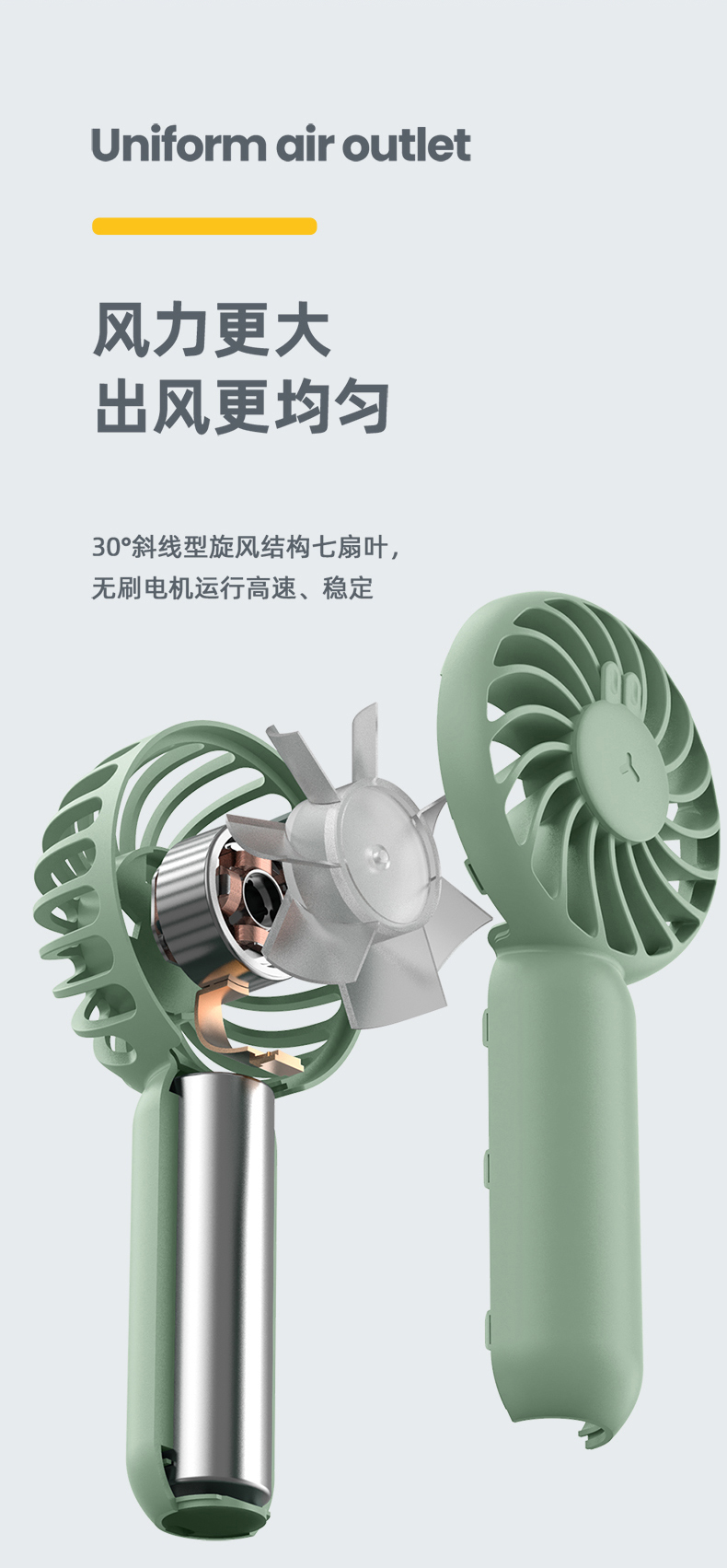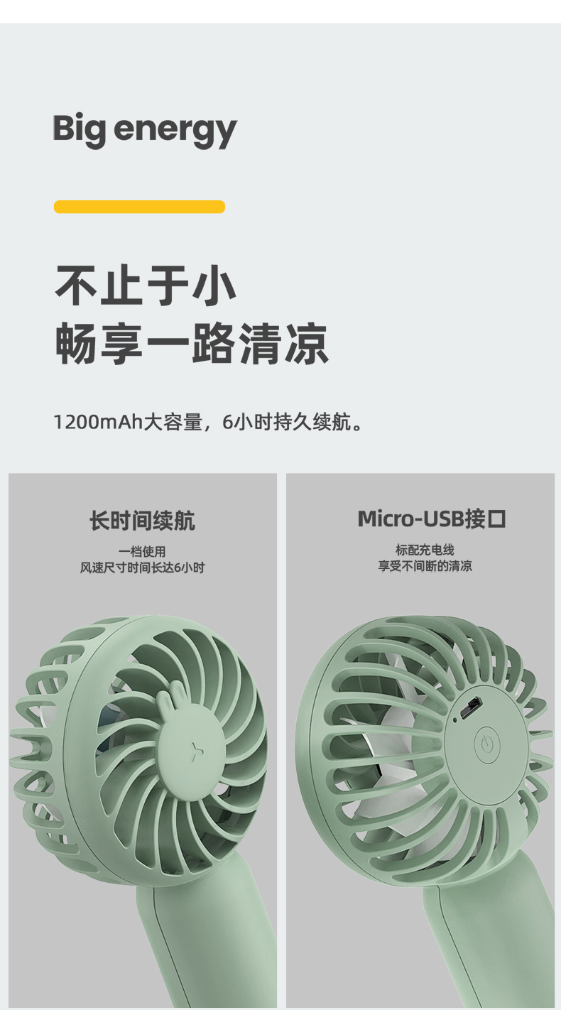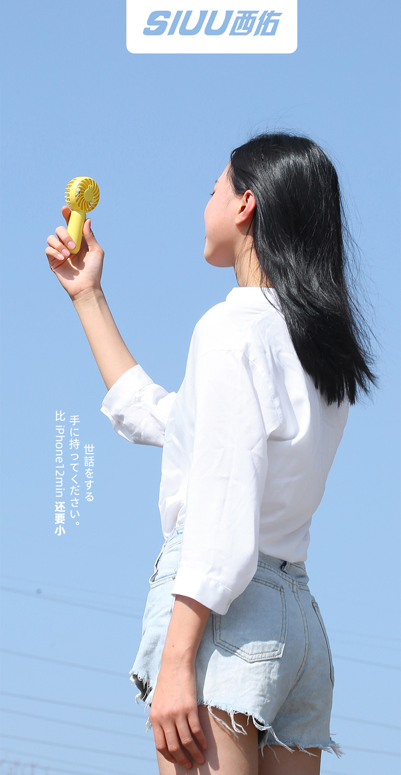 SIUU西佑 迷你手持小风扇便携式随身USB小型大风力静音可充电户外桌面办公室学生电扇可充电电风扇 莫兰迪绿 柠檬黄