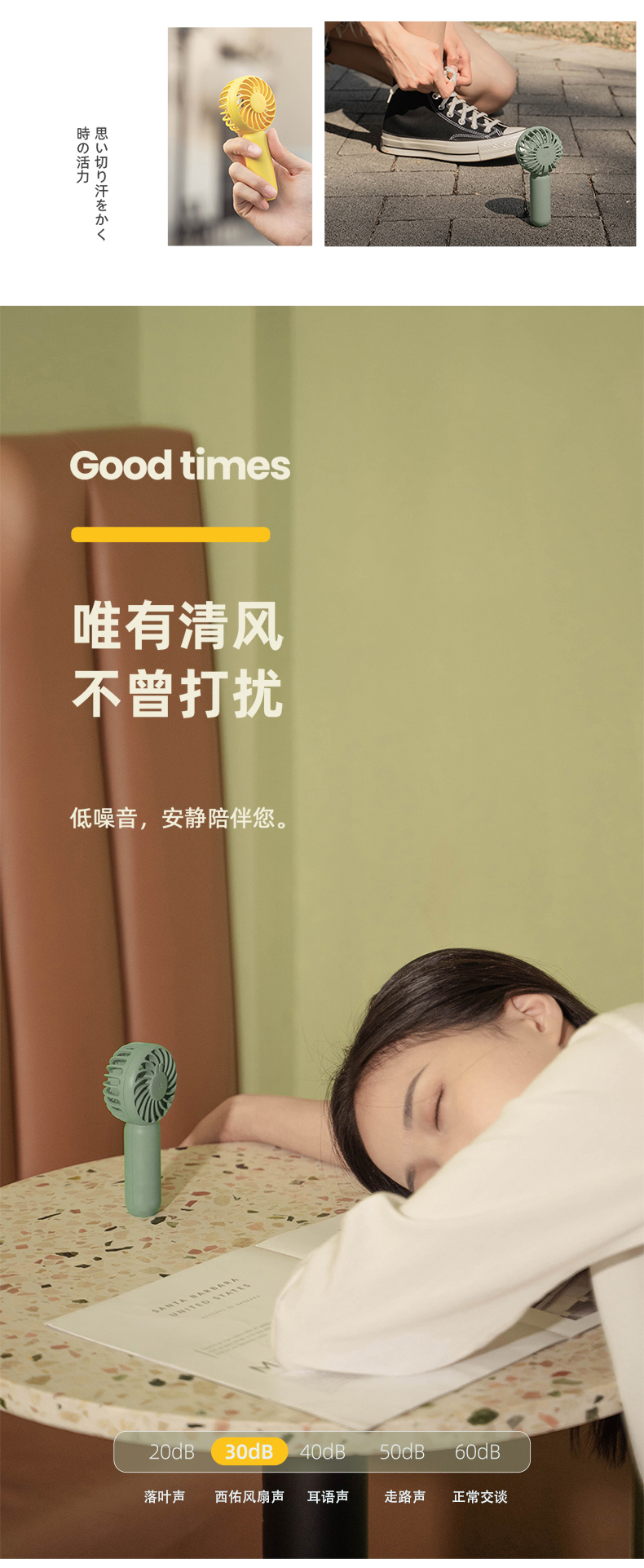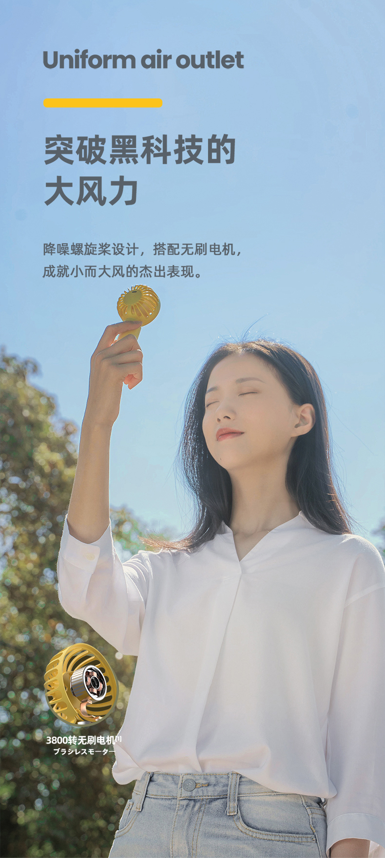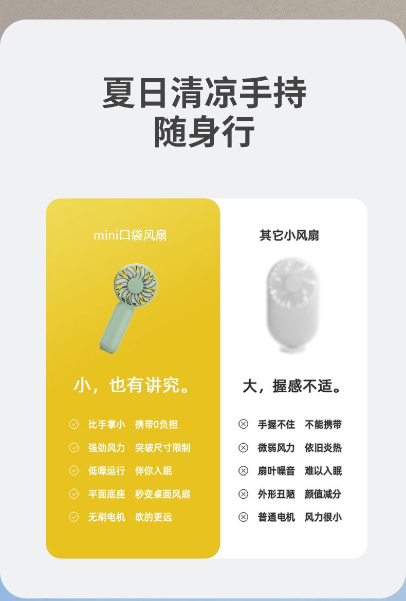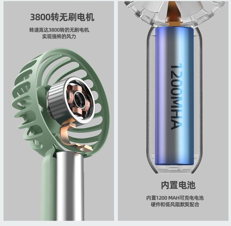 SIUU西佑 迷你手持小风扇便携式随身USB小型大风力静音可充电户外桌面办公室学生电扇可充电电风扇 莫兰迪绿 柠檬黄
