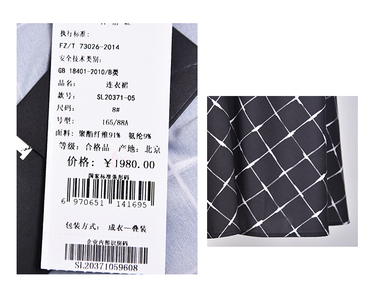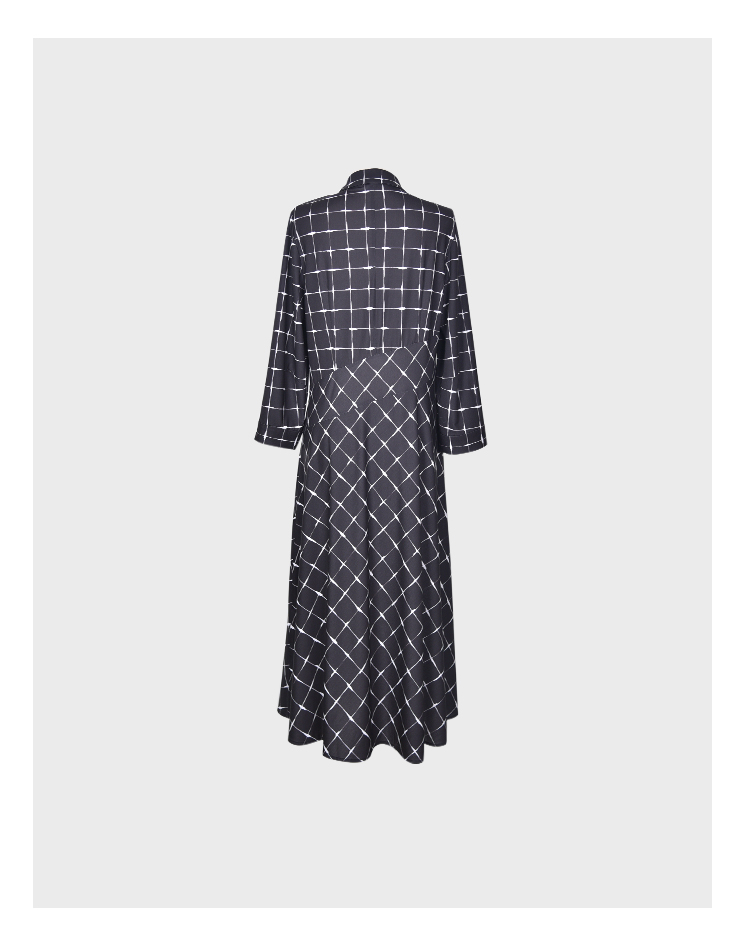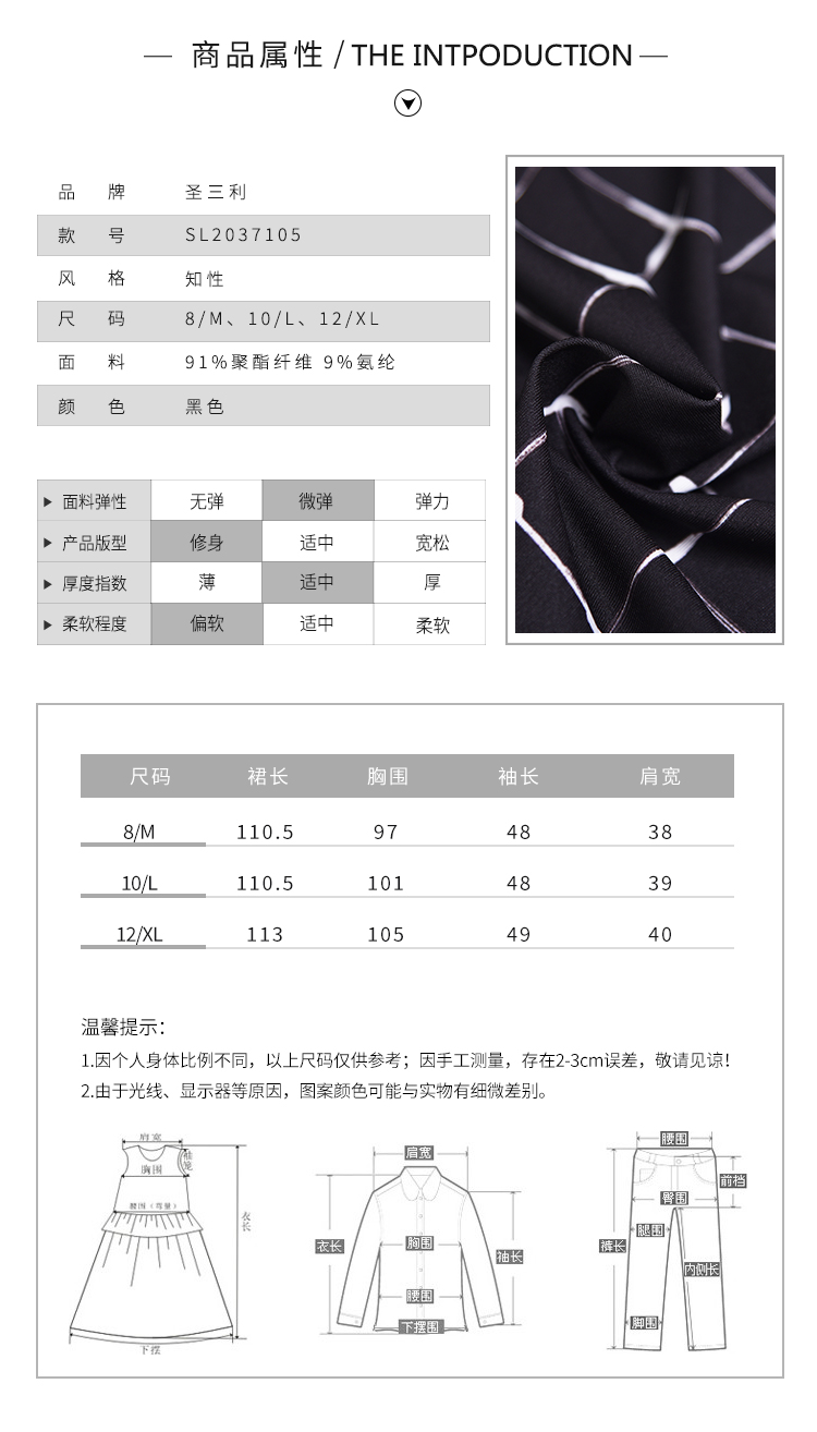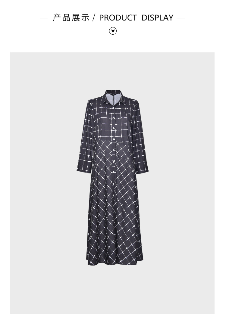 圣三利女装 新款中长款衬衫式收腰散摆格子连衣裙SL2037105