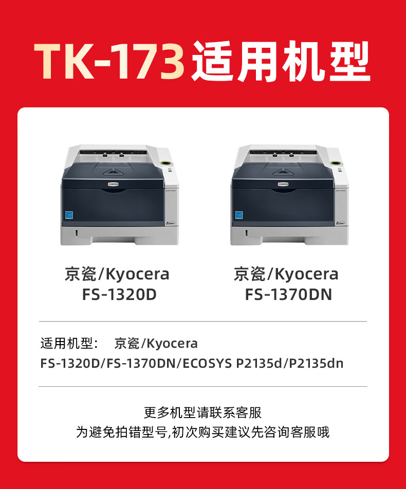 绘威TK-173粉盒 适用京瓷Kyocera FS-1320D FS-1370DN ECOSYS P2135d P2135dn复印机墨粉盒 墨盒 碳粉