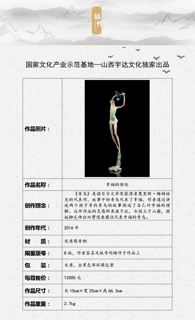 宇达青铜摆件 思维作品《幸福的预兆》限量8版 艺术装饰摆件 高66.3cm