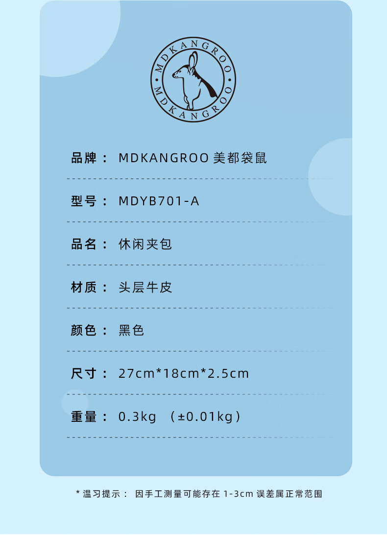 美都袋鼠美都袋鼠休闲夹包出行赠礼MDYB701-A 黑色