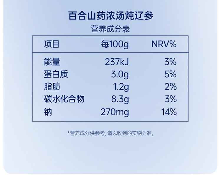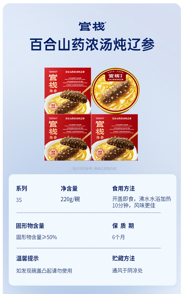 【新品上市】官栈百合山药浓汤炖辽参220g/盒 商品图1