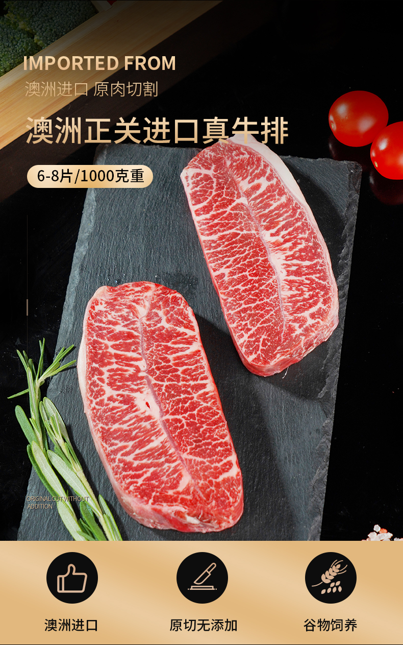 帕莱农 澳洲和牛M4-5雪花牛排1000g 顺丰到家