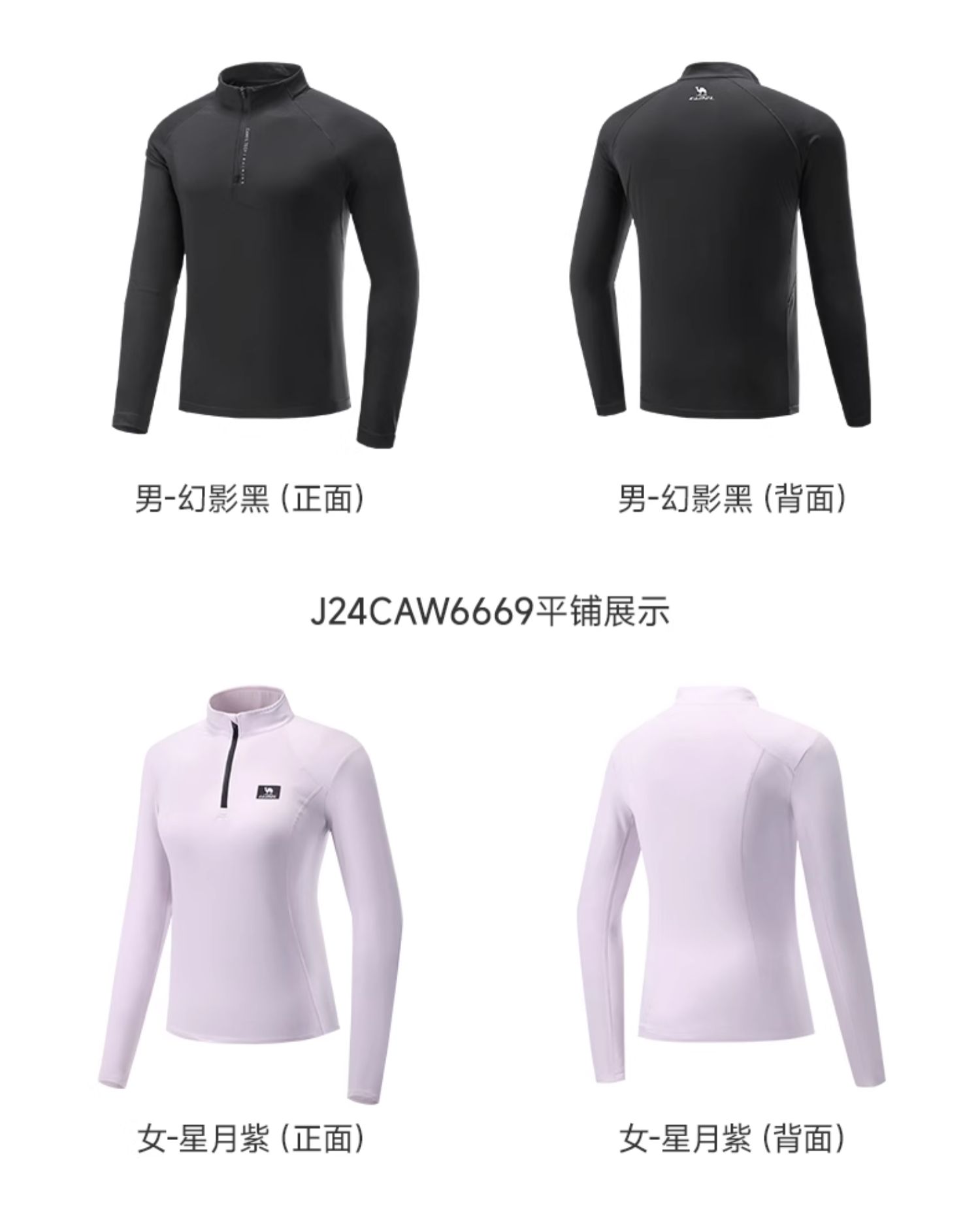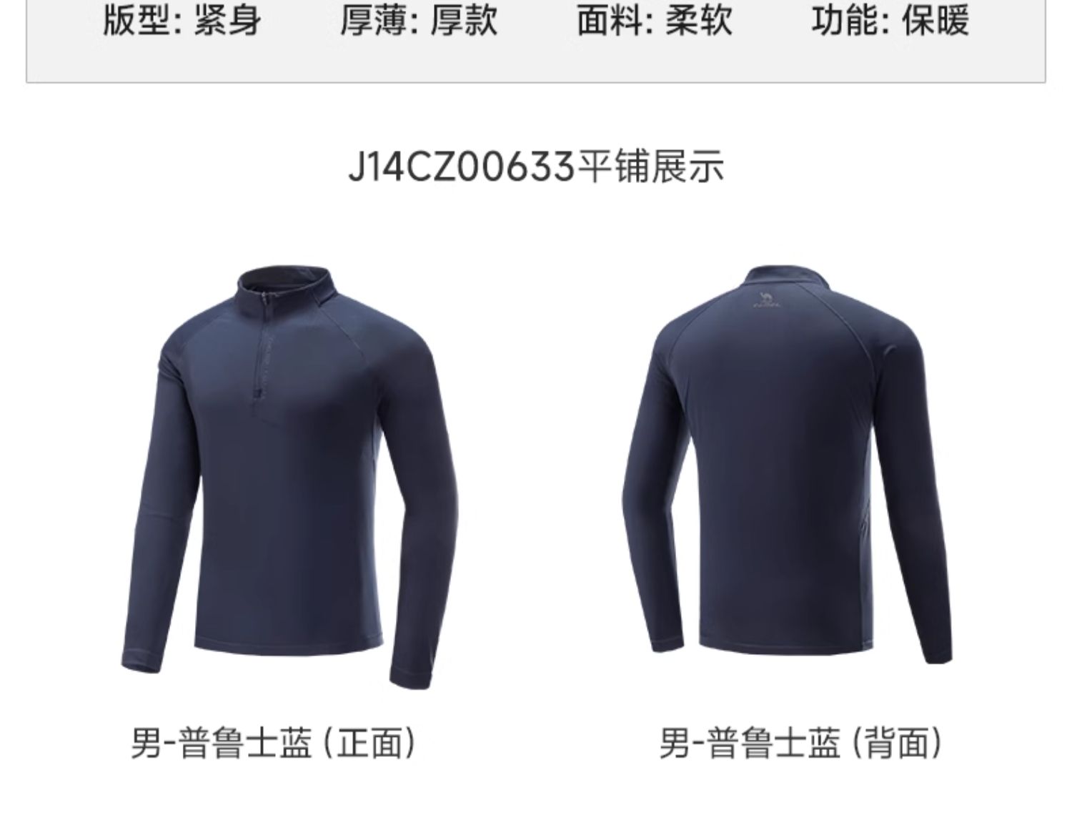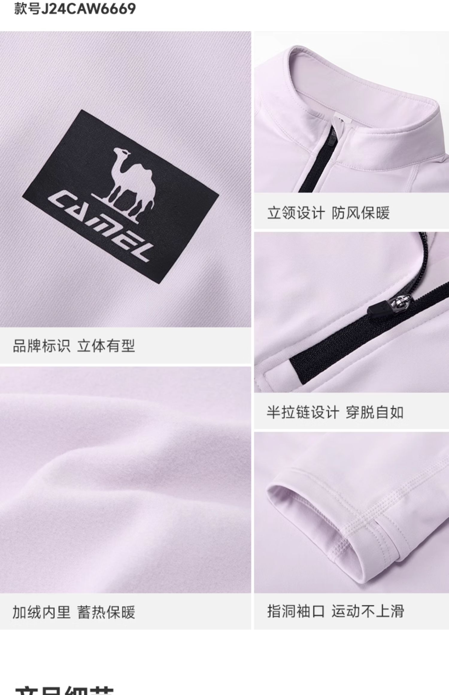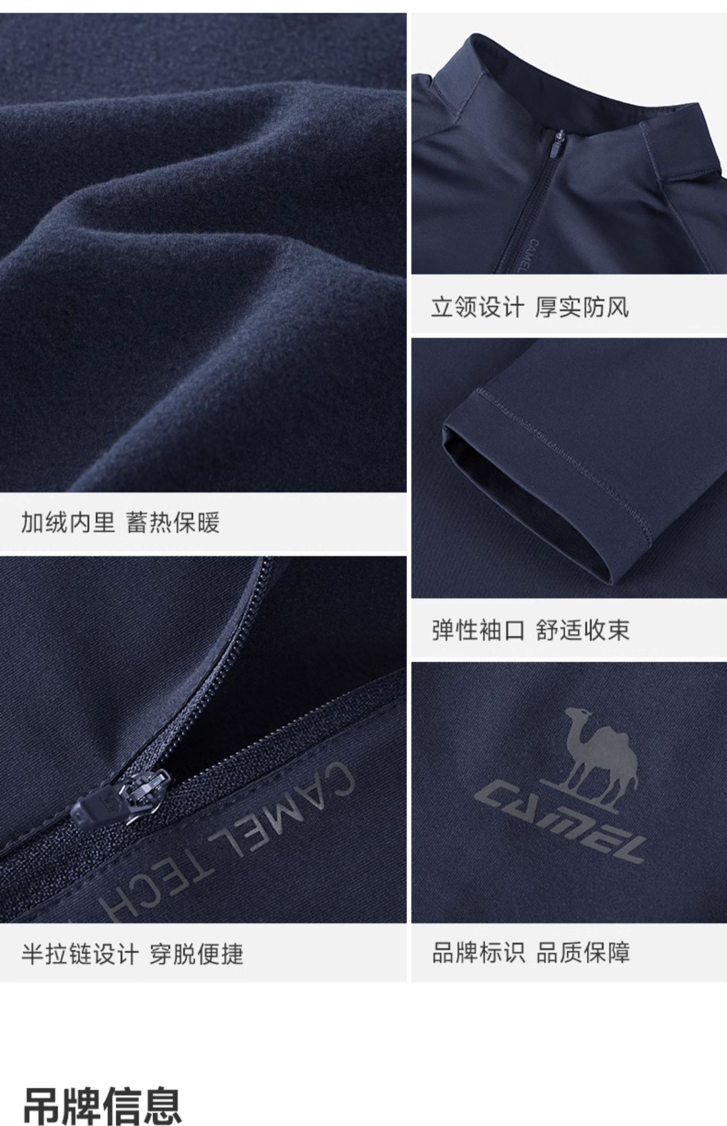 骆驼运动长袖T恤男女24秋季新款抓绒保暖瑜伽服立领加绒跑步上衣 J14CZ00633_J24CAW6669