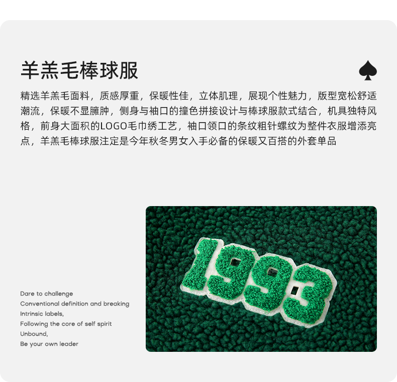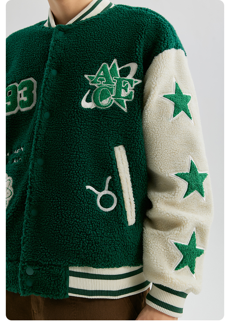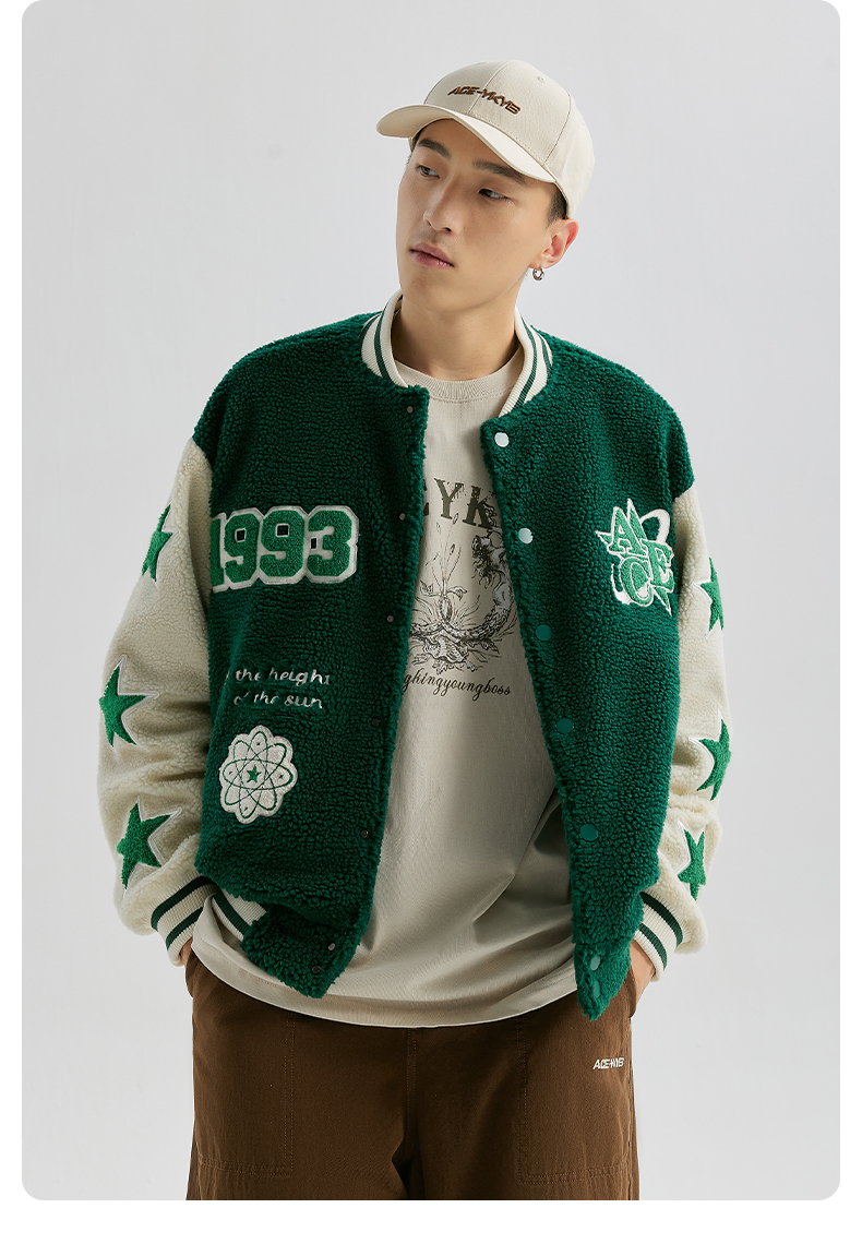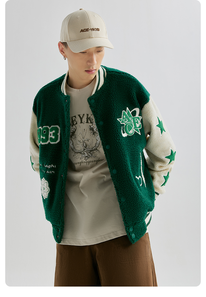 【YKYB黄子韬同款】羊羔毛棒球服拼接刺绣上衣潮街头保暖宽松外套
