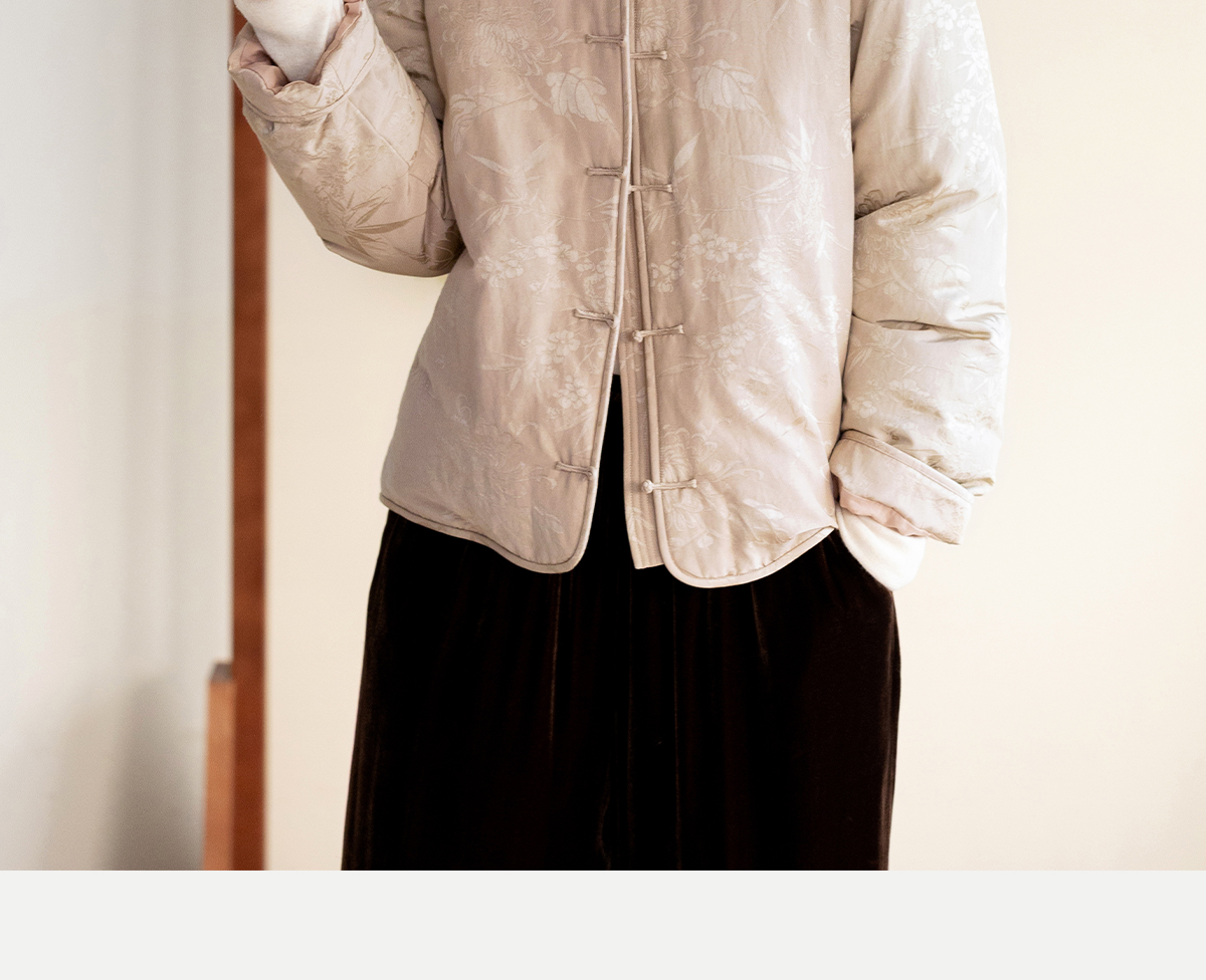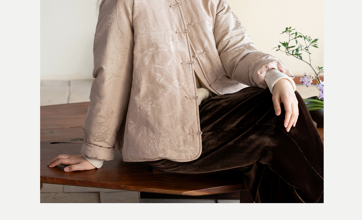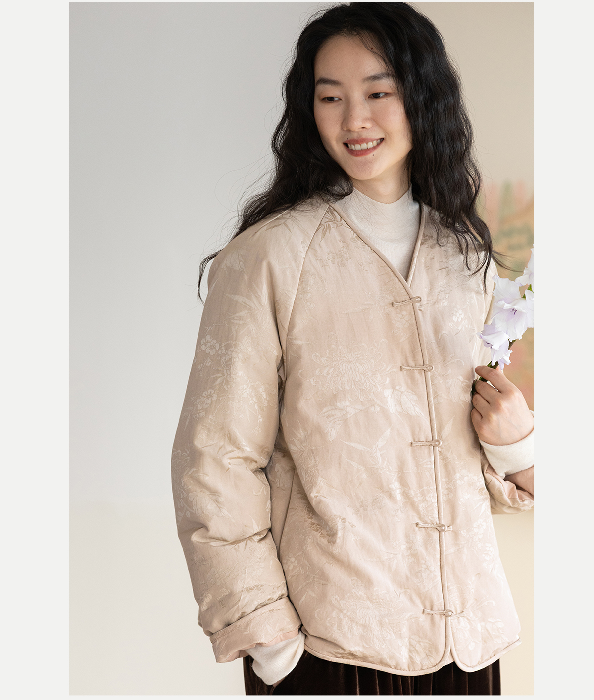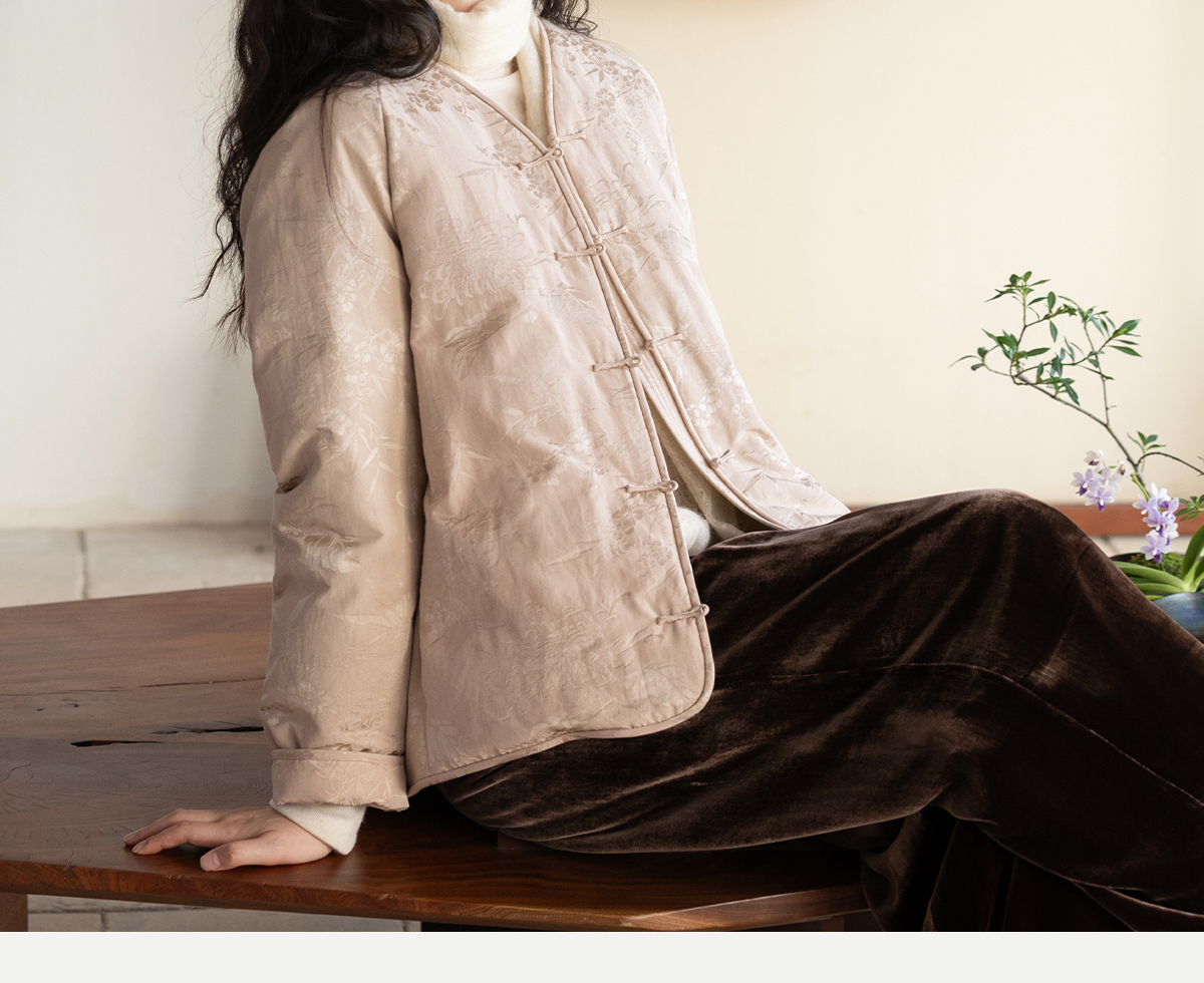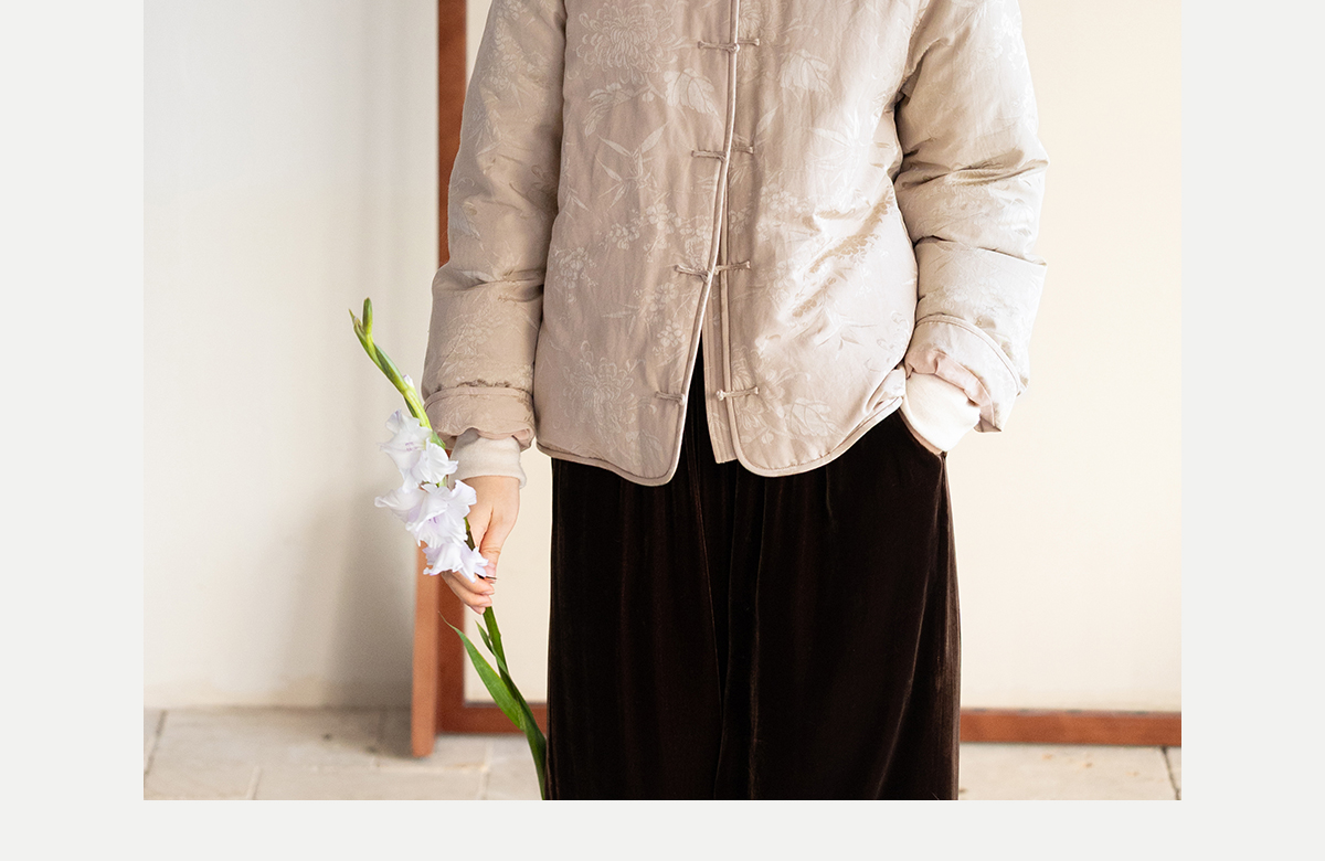 牧衣游原创 丝棉提花95级高蓬松红嘴雁绒羽绒服外套保暖粉色 幽清