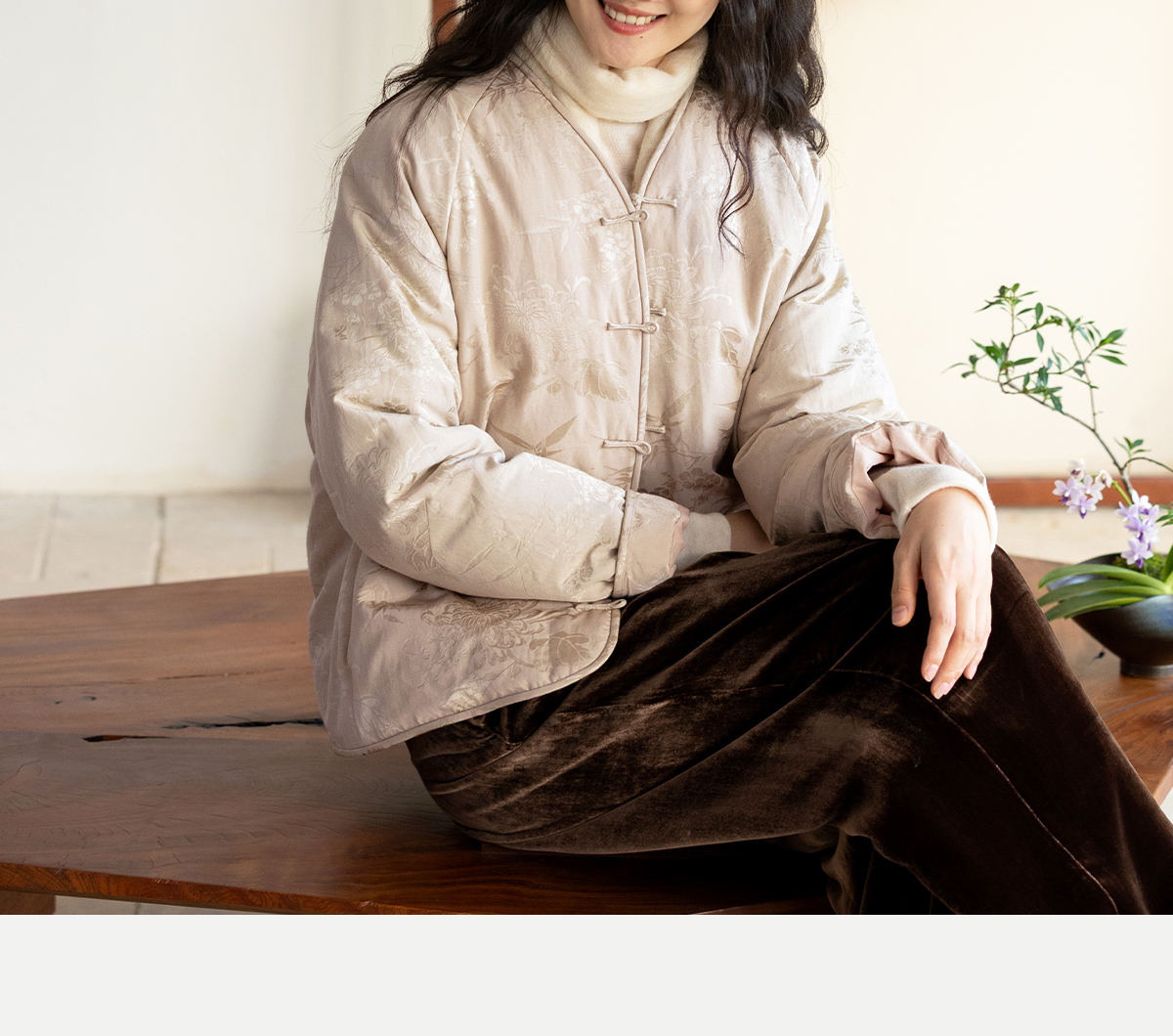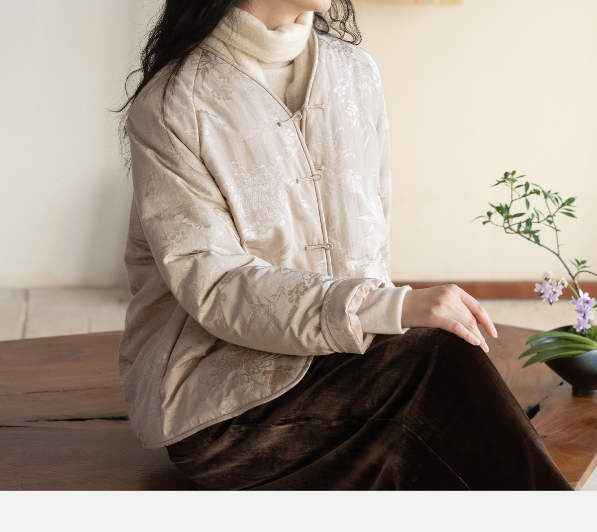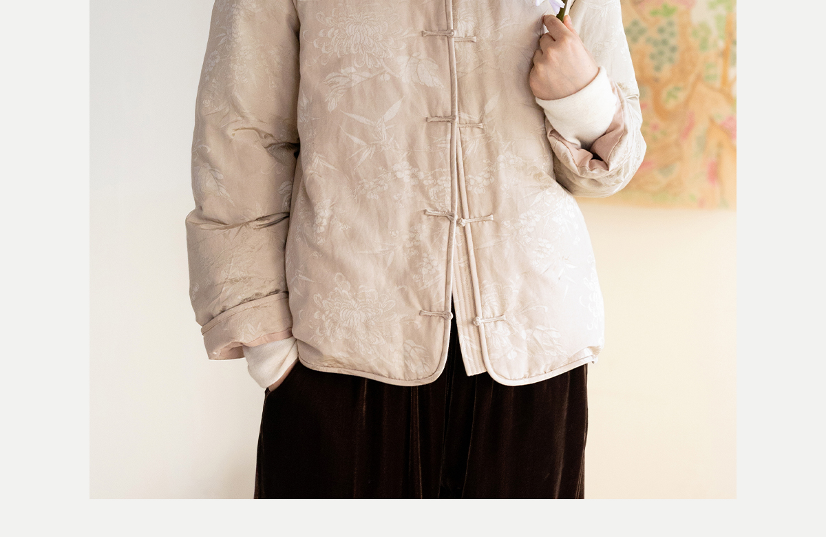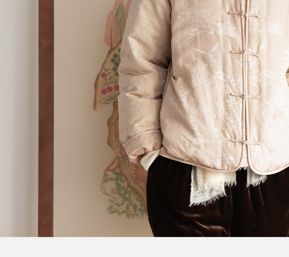 牧衣游原创 丝棉提花95级高蓬松红嘴雁绒羽绒服外套保暖粉色 幽清