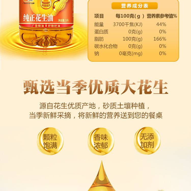喜垦纯正花生油5L (纯正压榨家用烹饪健康食用油)