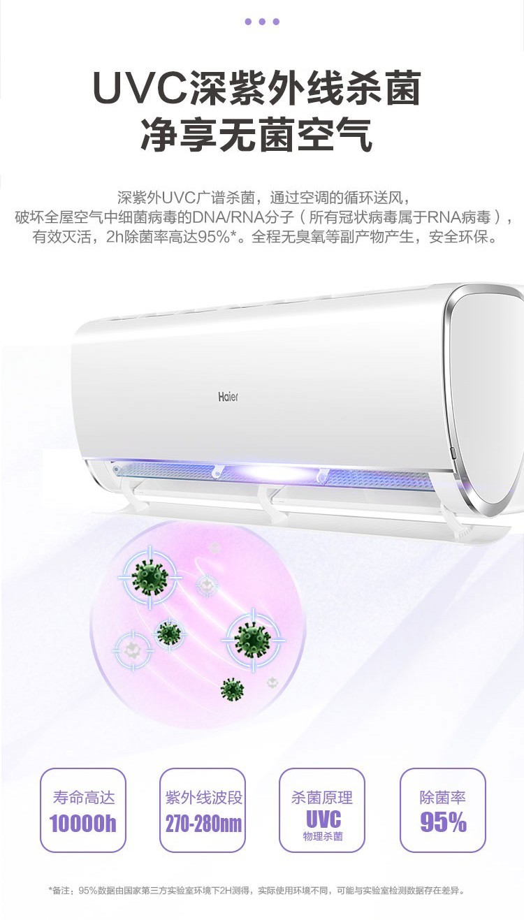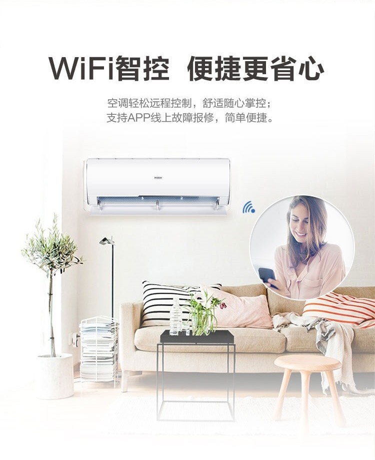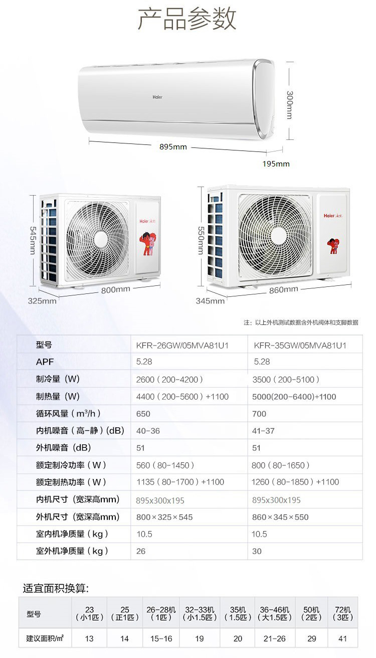 海尔空调挂机家用 冷暖两用1.5匹/大1P壁挂式 一级能效变频卧室挂壁智能防直吹速冷空调KFR-26GW/05MVA81U1