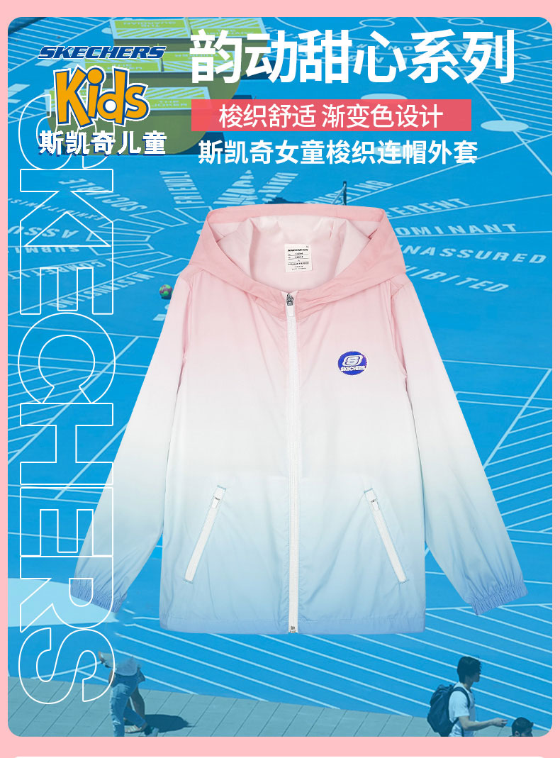 小斯凯奇童款夏季新款女童轻薄防晒梭织连帽外套P222G035