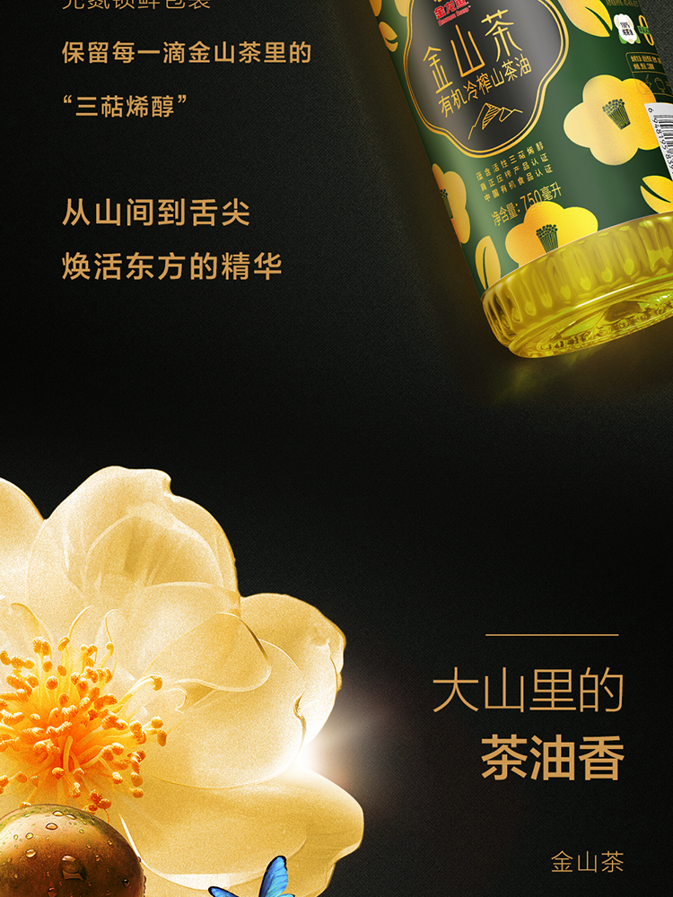 金龙鱼金山茶有机压榨山茶油750ml×2马口铁礼盒
