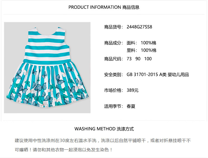 女童春夏绿色蝴蝶连衣裙
