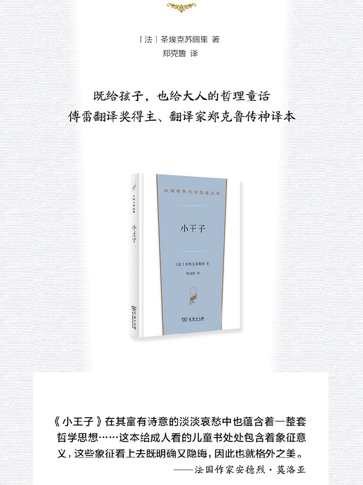 圣埃克苏佩里(Antoine de Saint-Exupéry, 1900—1944),法国著名作家、飞行员。1900年6月29日生于法国里昂。1940年侨居纽约,埋头写作。1943年出版《小王子》。一年后,为祖国披甲对抗纳粹德军。在执行一次飞行任务时失踪,被授予“法兰西烈士”称号,成为享誉法国的作家和民族英雄。另著有《夜航》《人类的大地》等。
