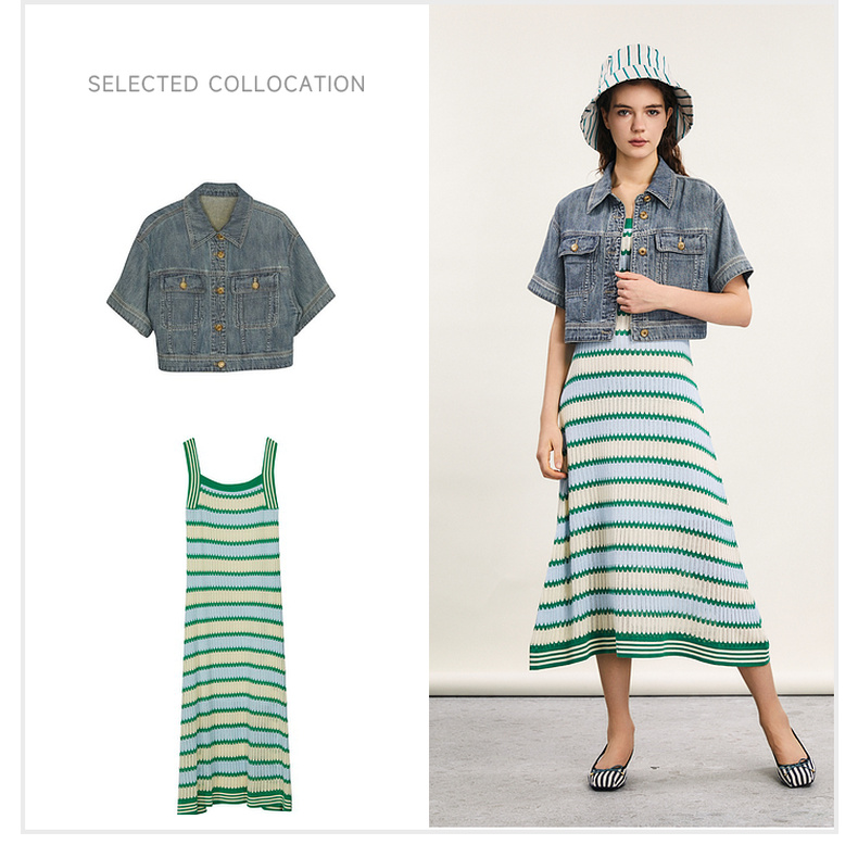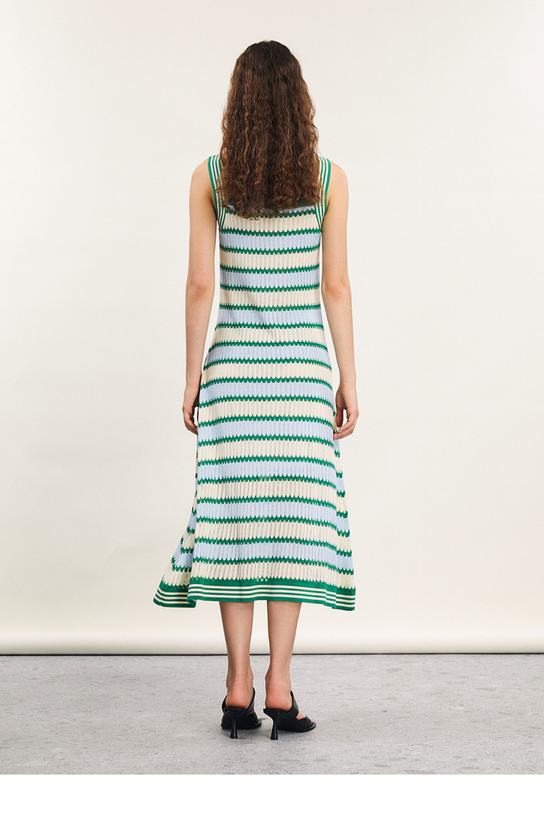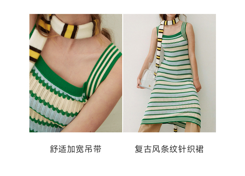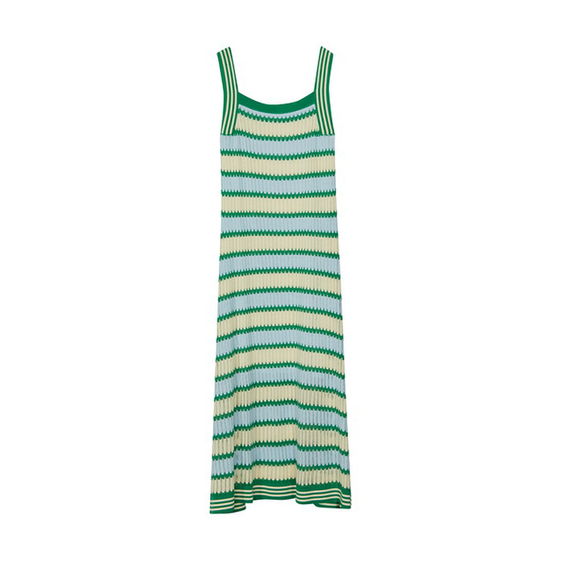 谜底针织连衣裙无袖女2024春季新款条纹修身吊带裙长裙241MZ0332