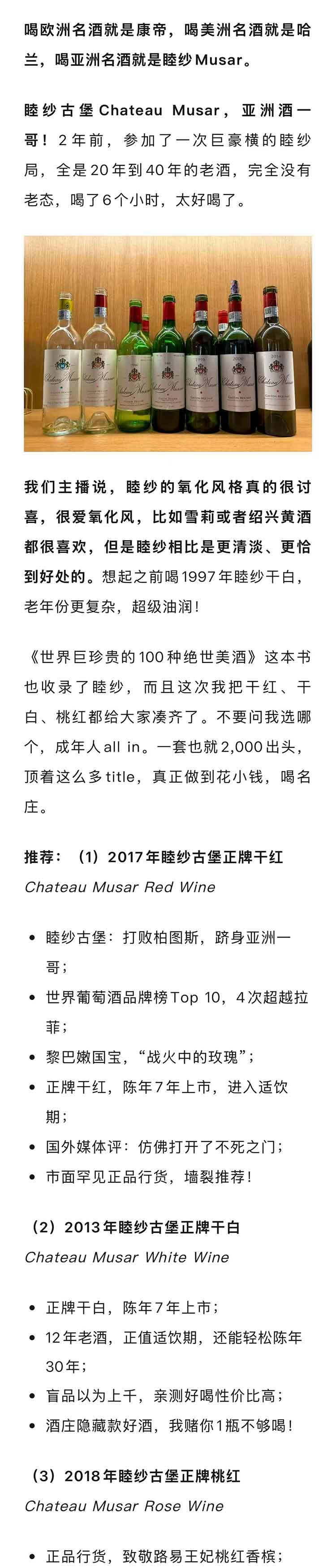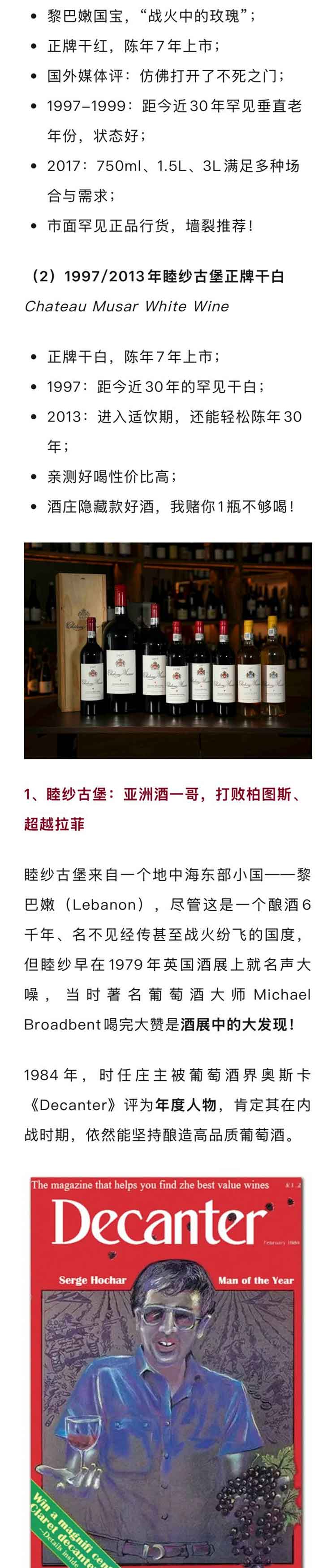 【拓宽喝酒边界】黎巴嫩睦纱古堡2017年正牌干红/2013年正牌干白/2018年正牌桃红