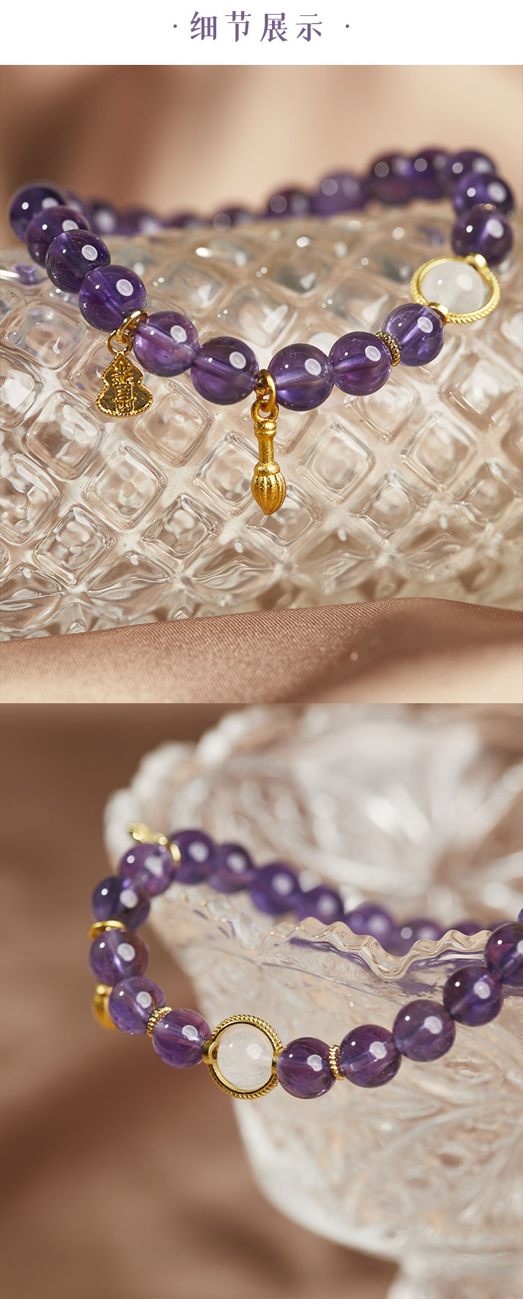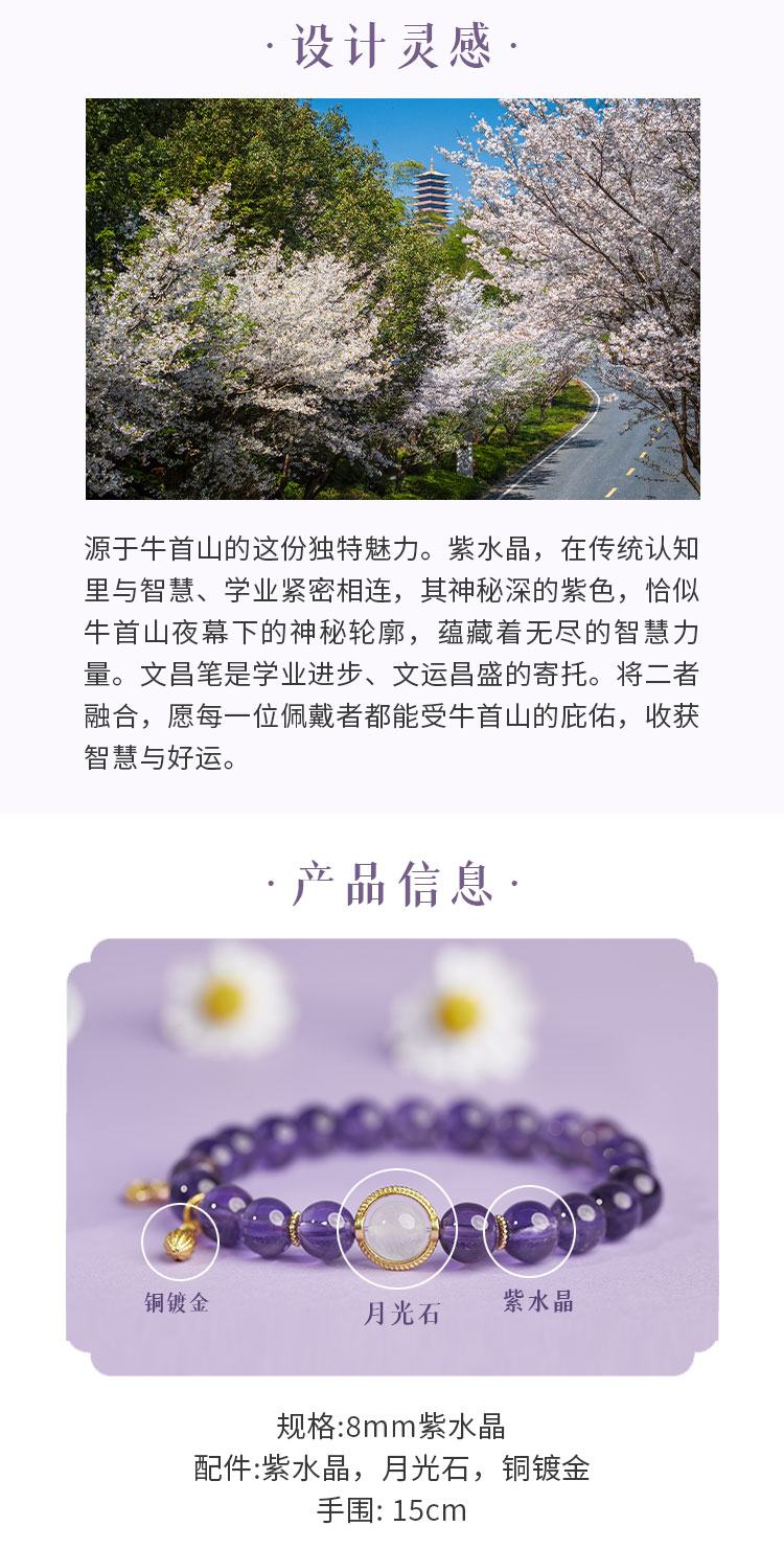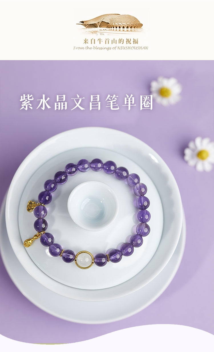 牛首山文创紫水晶文昌手串女款九紫离火手链和田玉生肖手饰礼物
