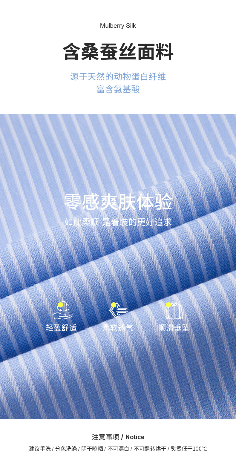 面料:聚酯纤维57% 再生纤维素纤维38%(莫代尔+粘纤)桑蚕丝3% 氨纶2%