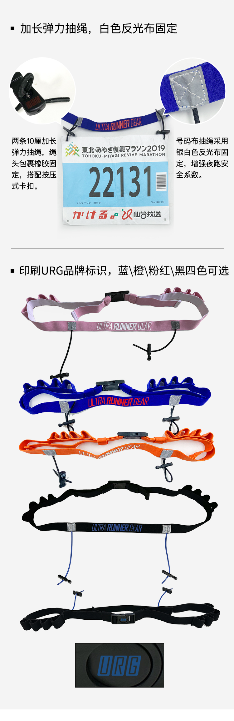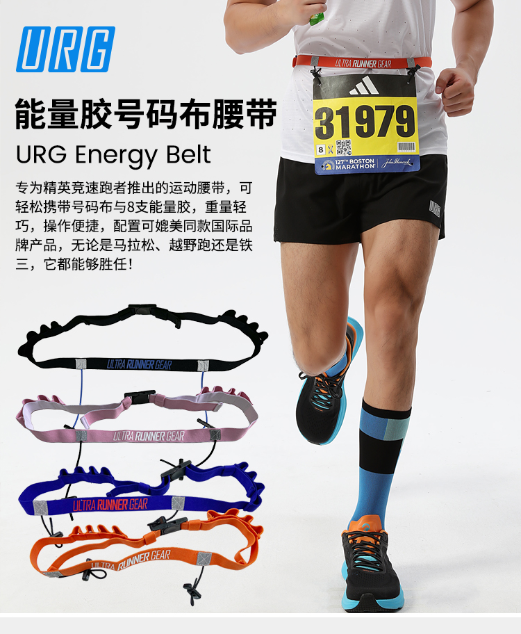 URG能量胶号码布腰带 Energy Belt男女春秋季跑步运动跑马拉松比赛越野跑户外健身腰带能量胶号码布腰带