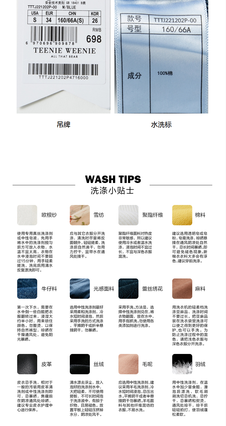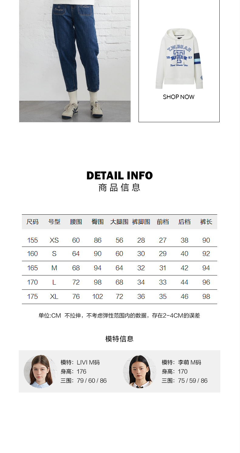 TeenieWeenie小熊牛仔裤长裤宽松韩版显瘦锥形裤女装2022春夏新款TTTJ221202P