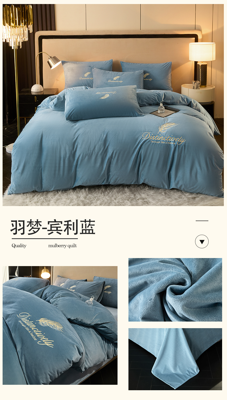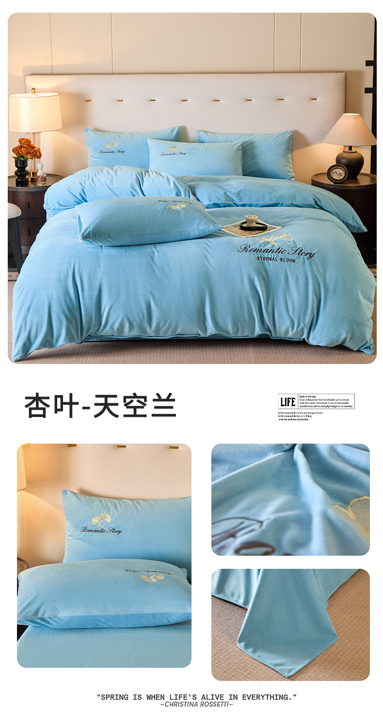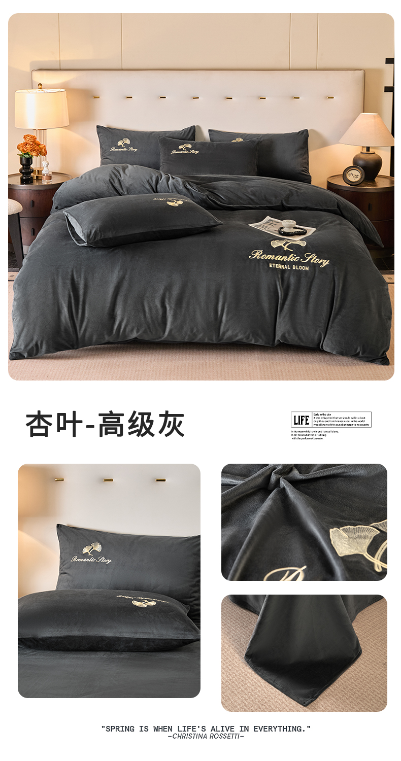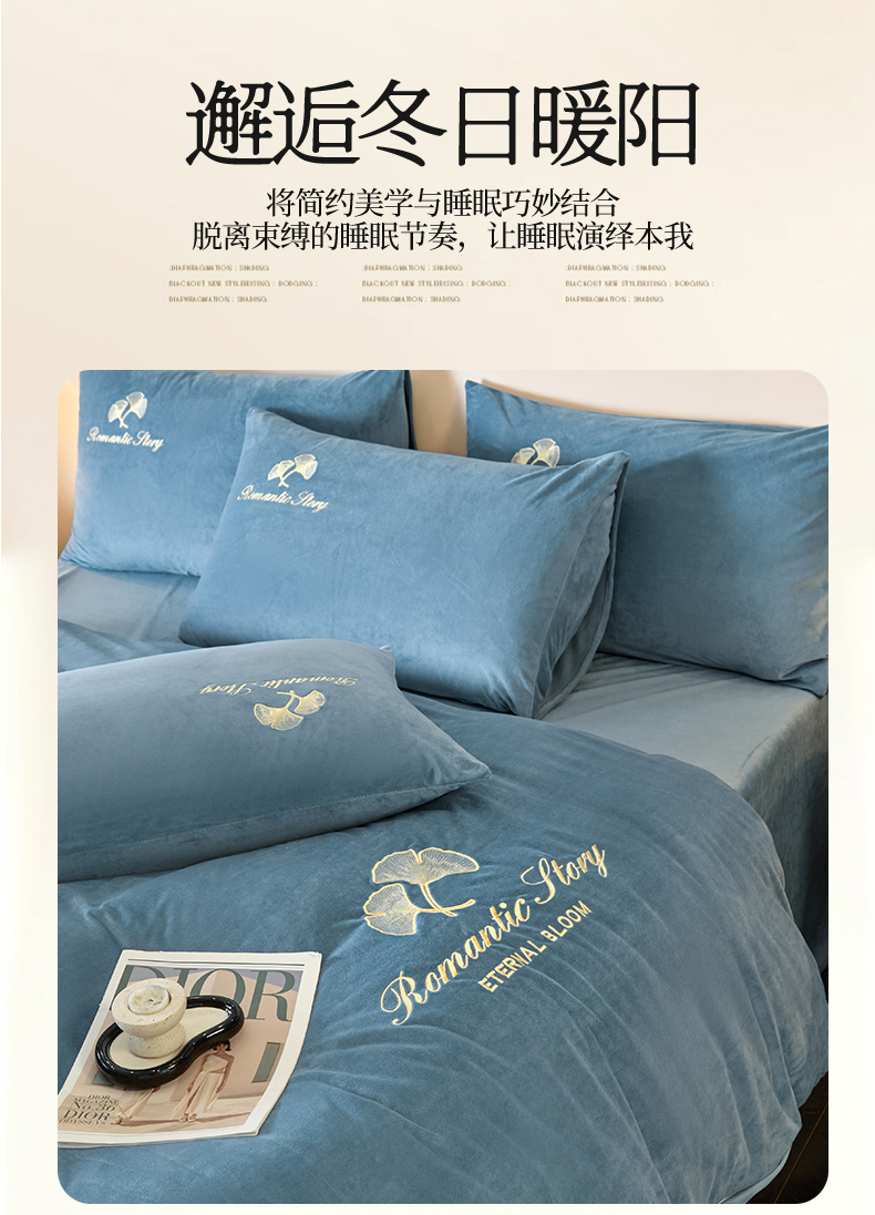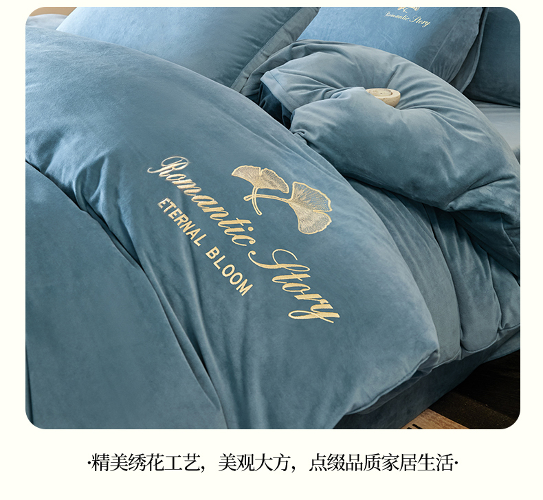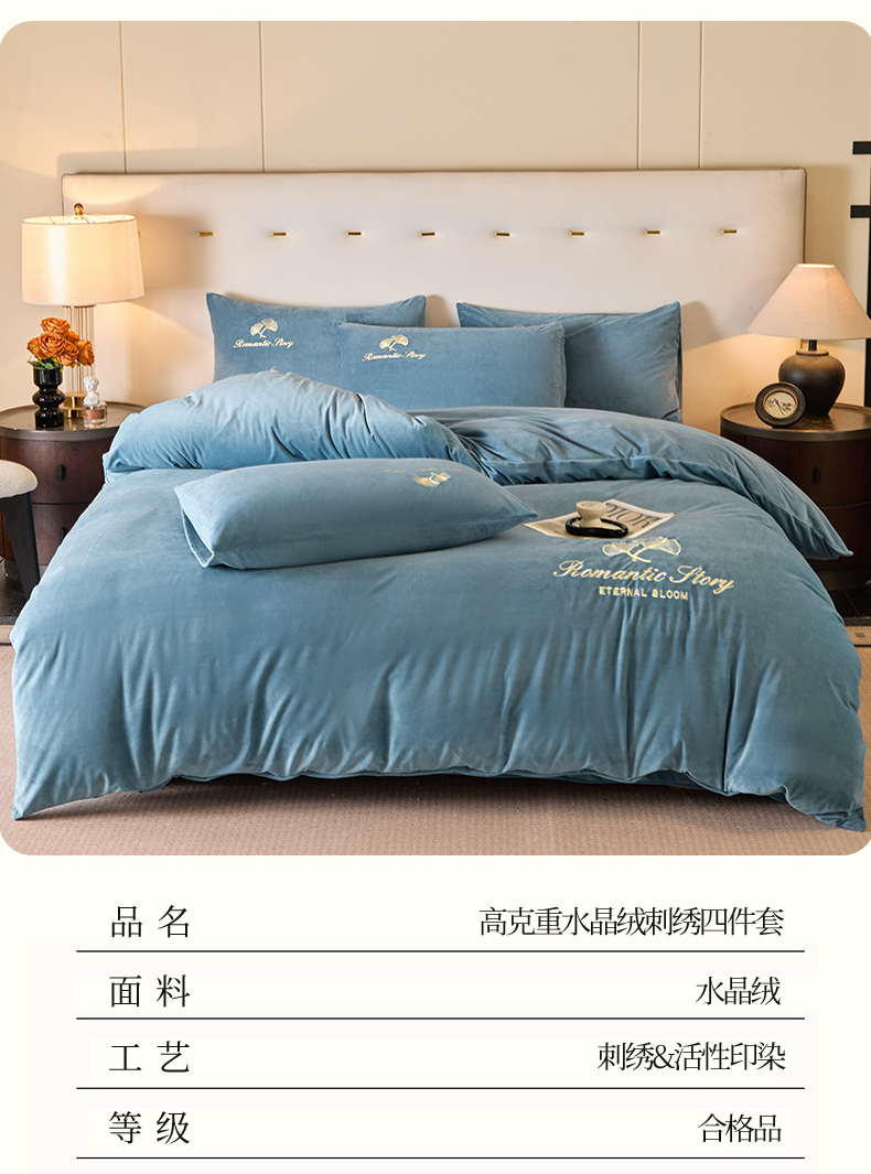 【品牌直发】加倍生活 高克重水晶绒绣花四件套 多色可选