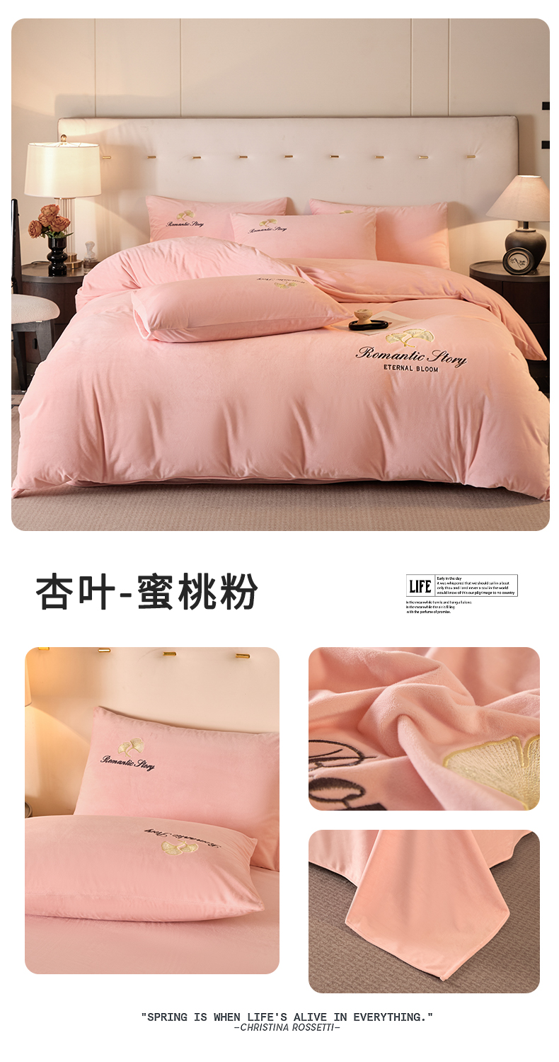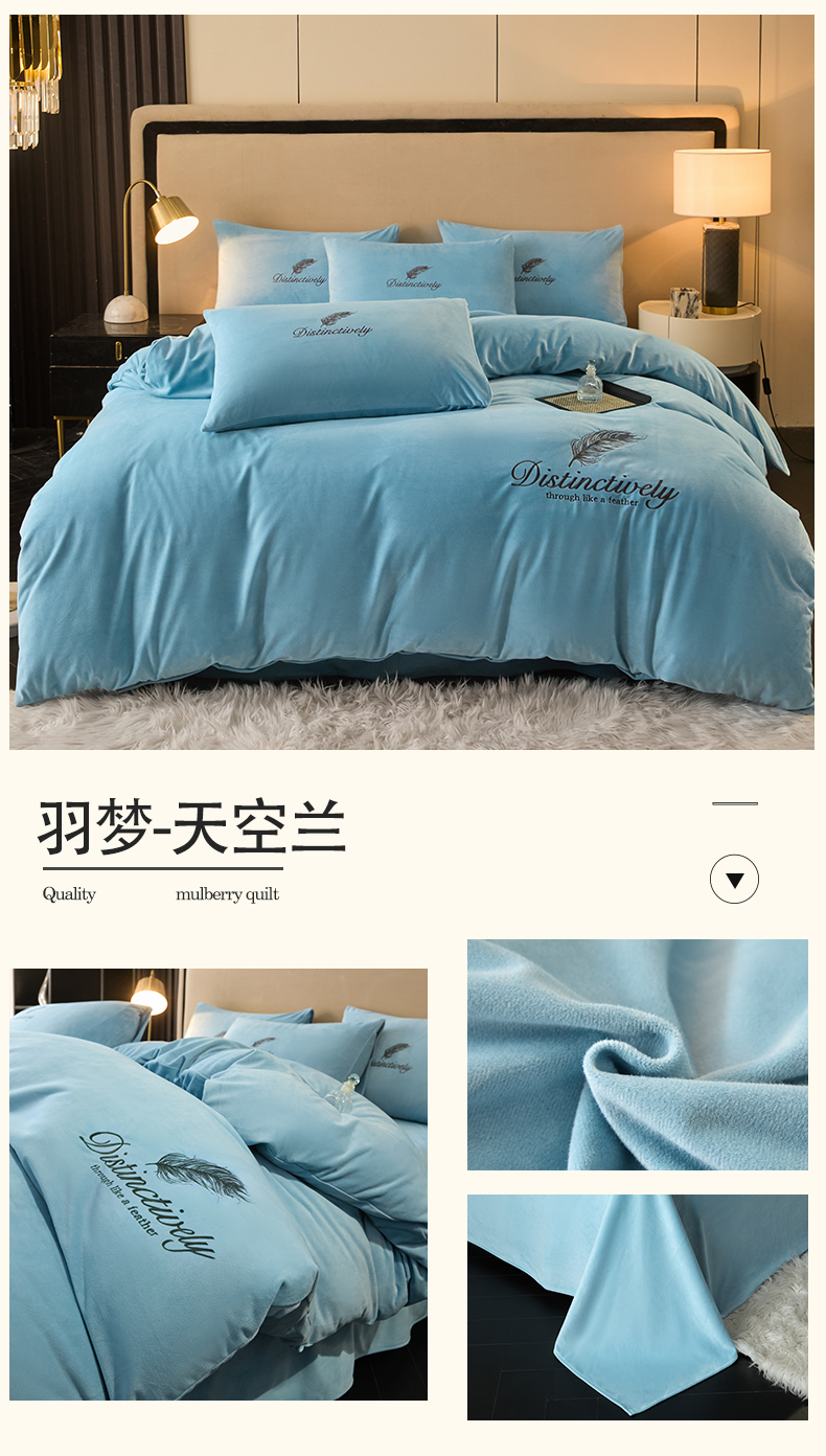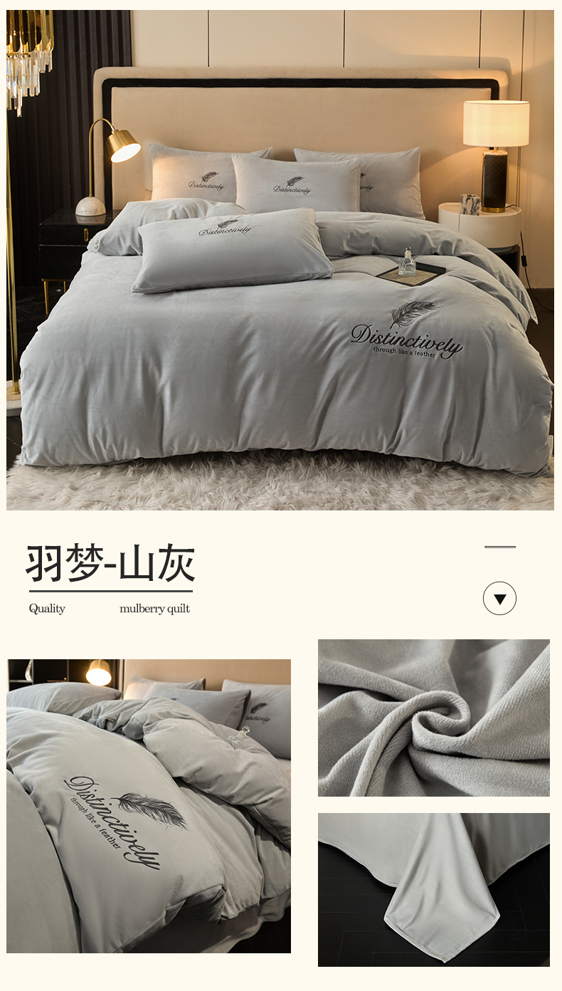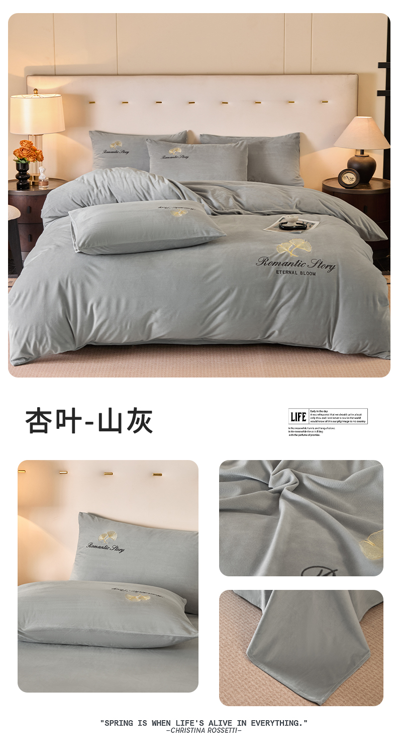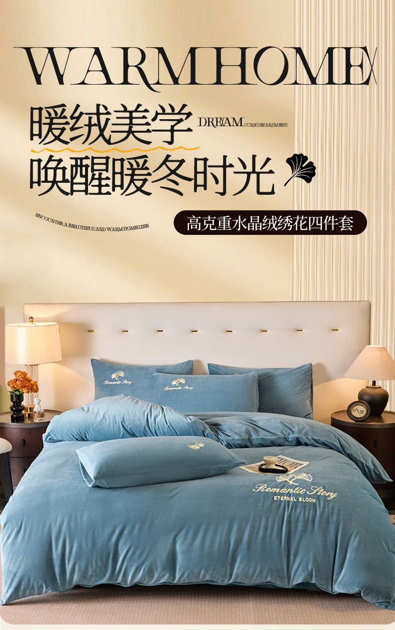 【品牌直发】加倍生活 高克重水晶绒绣花四件套 多色可选