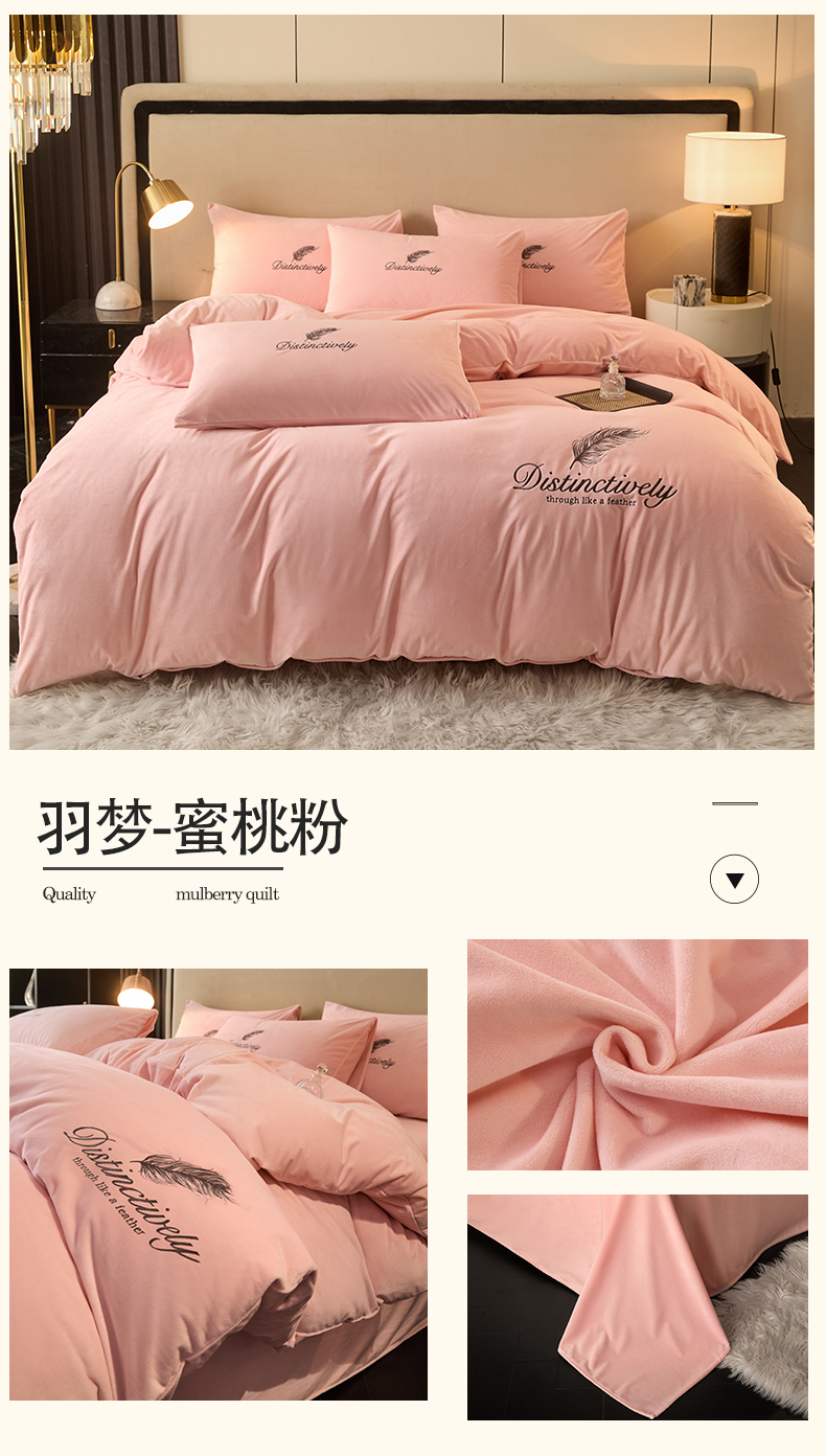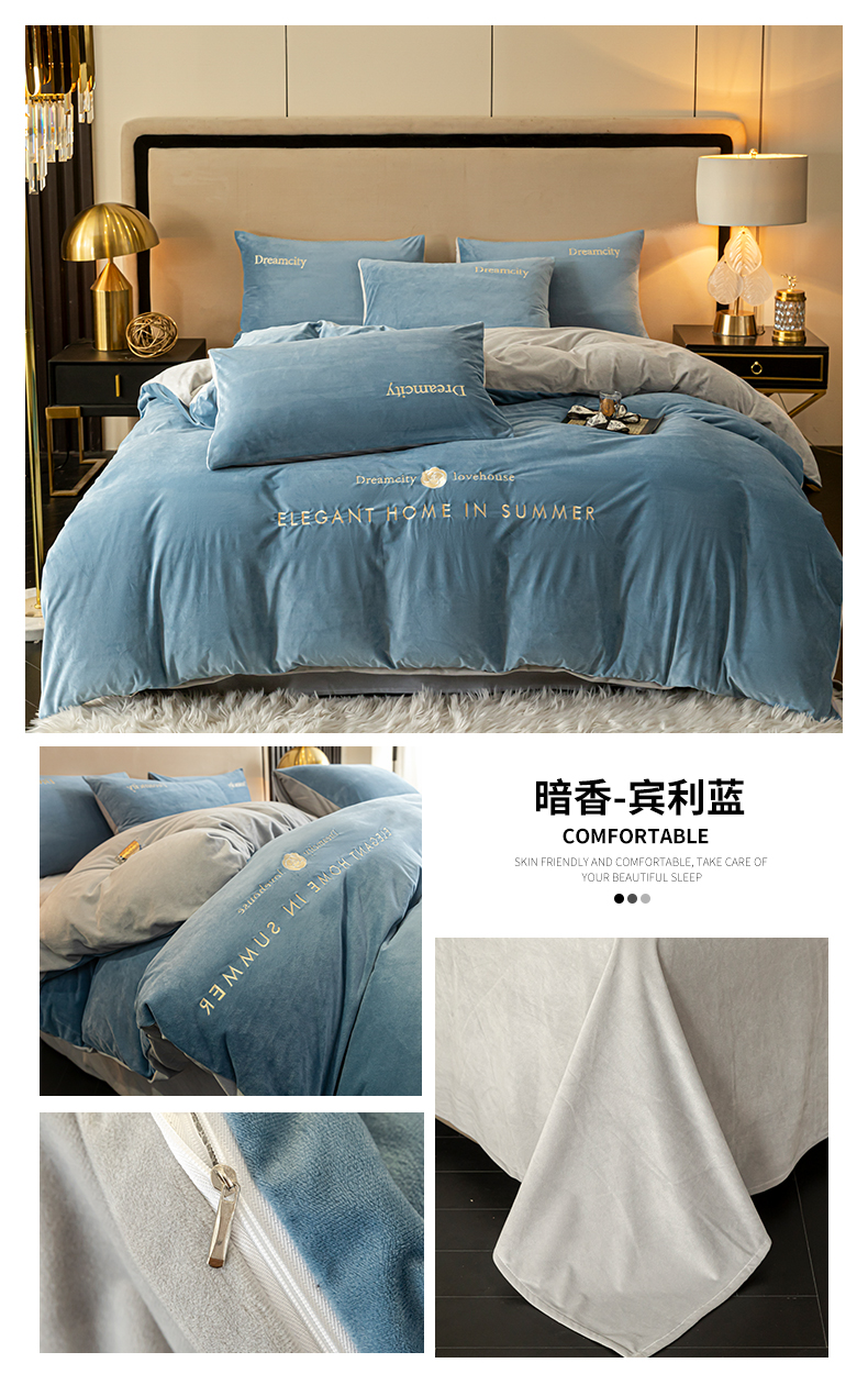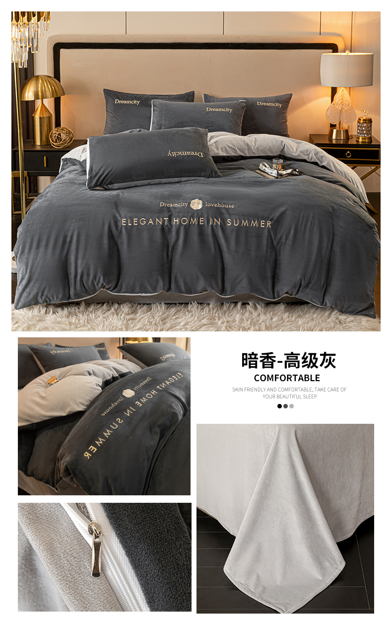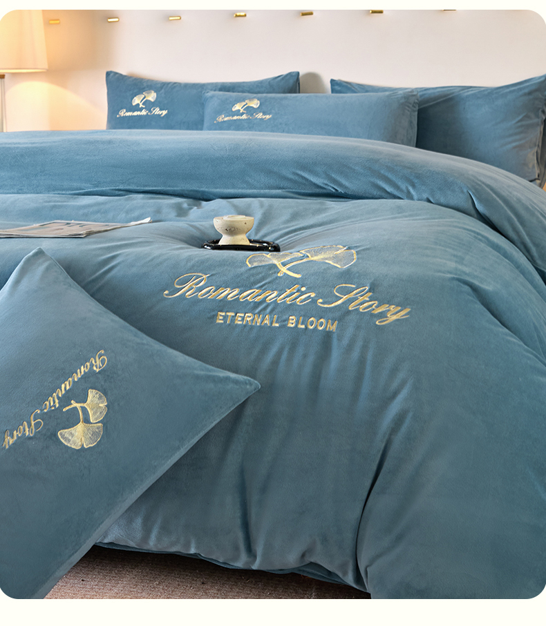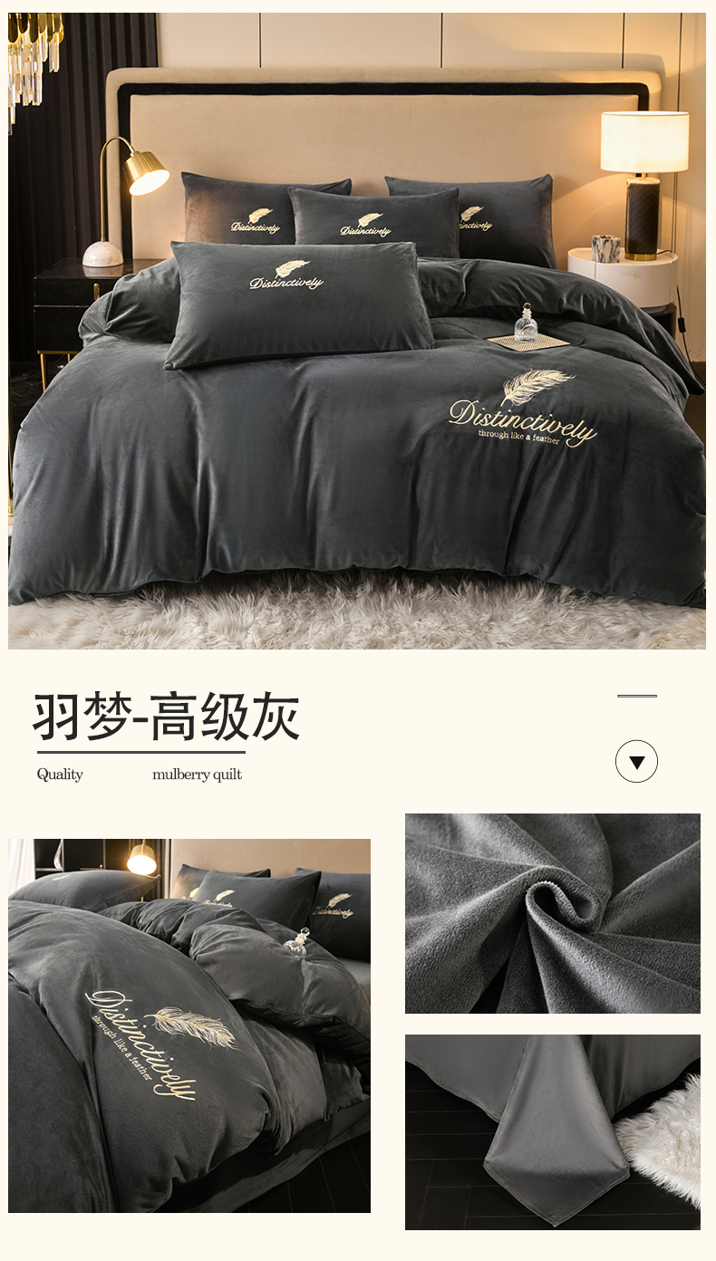 【品牌直发】加倍生活 高克重水晶绒绣花四件套 多色可选