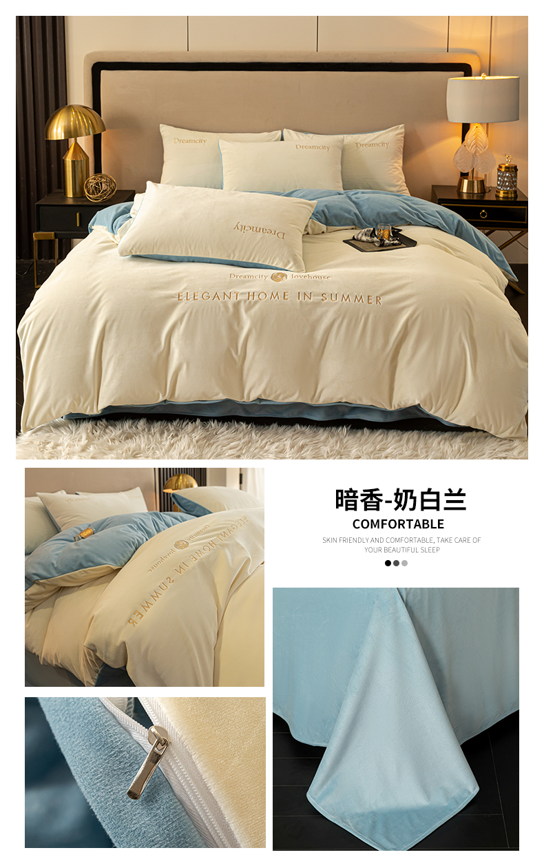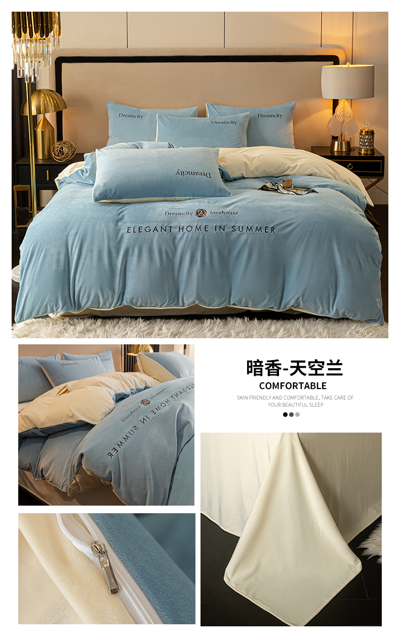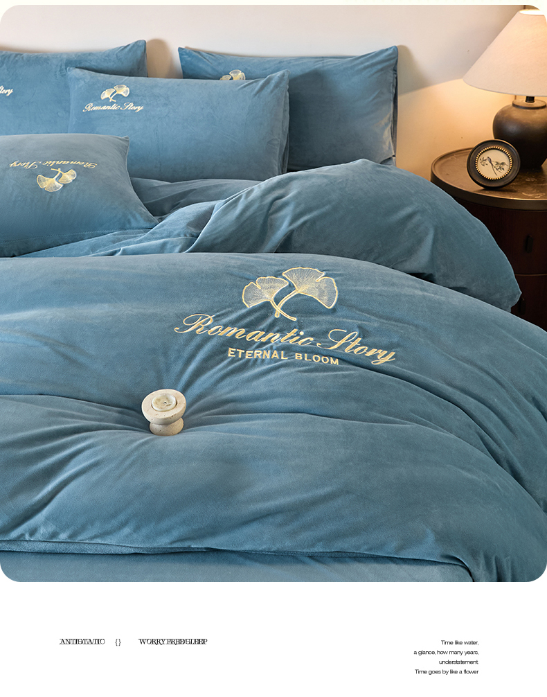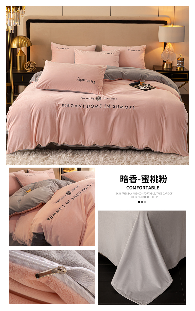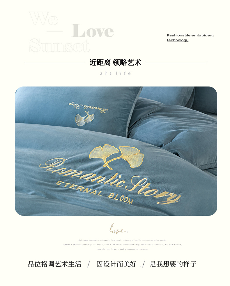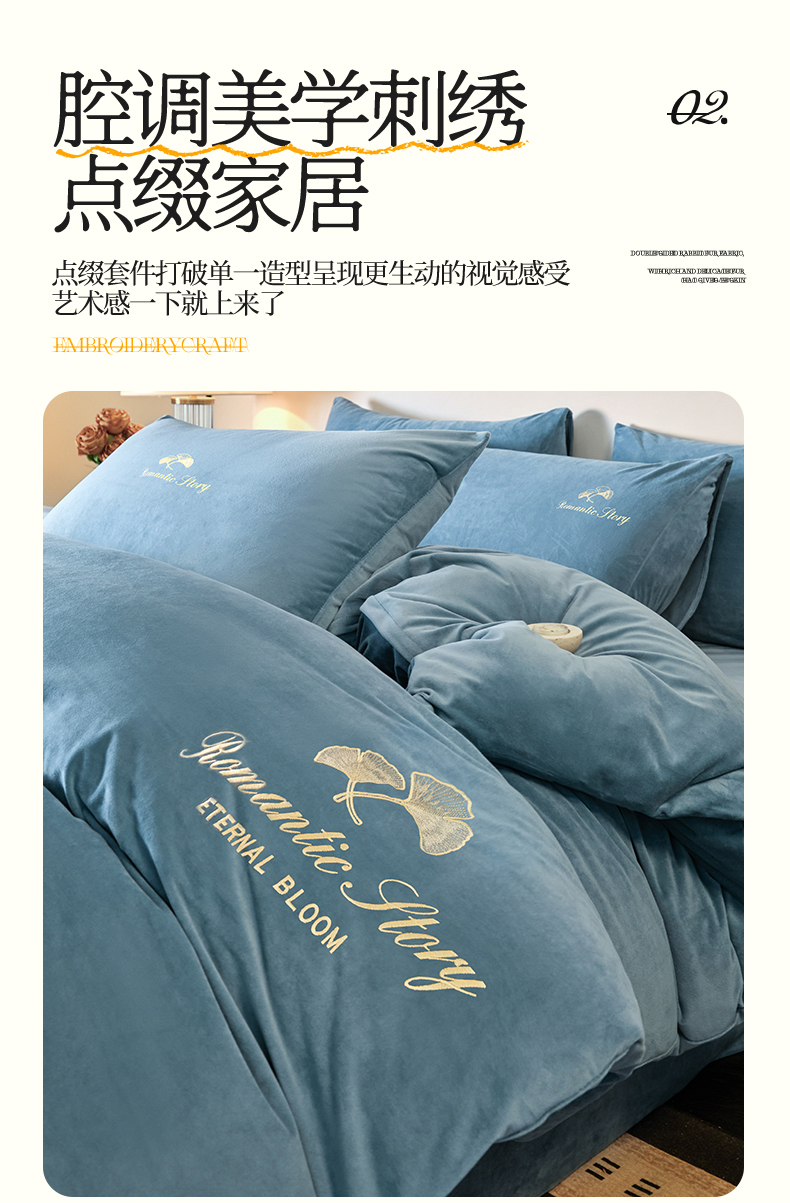 【品牌直发】加倍生活 高克重水晶绒绣花四件套 多色可选