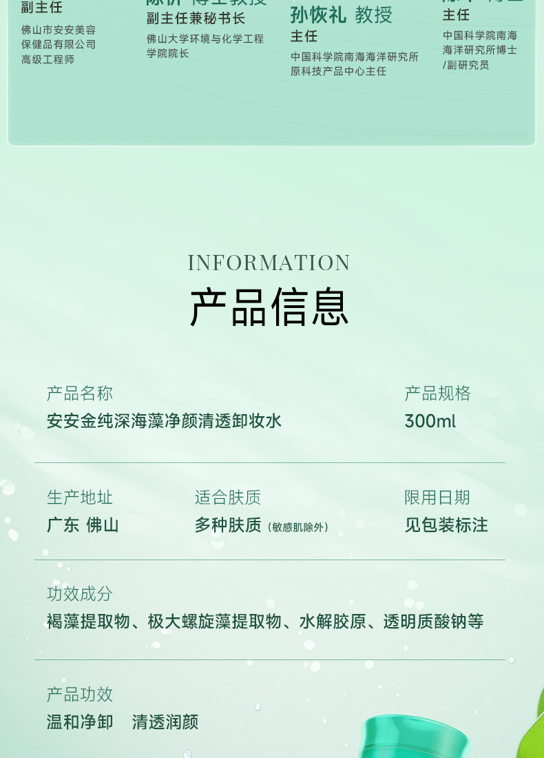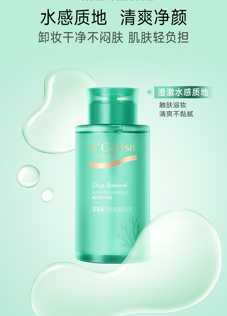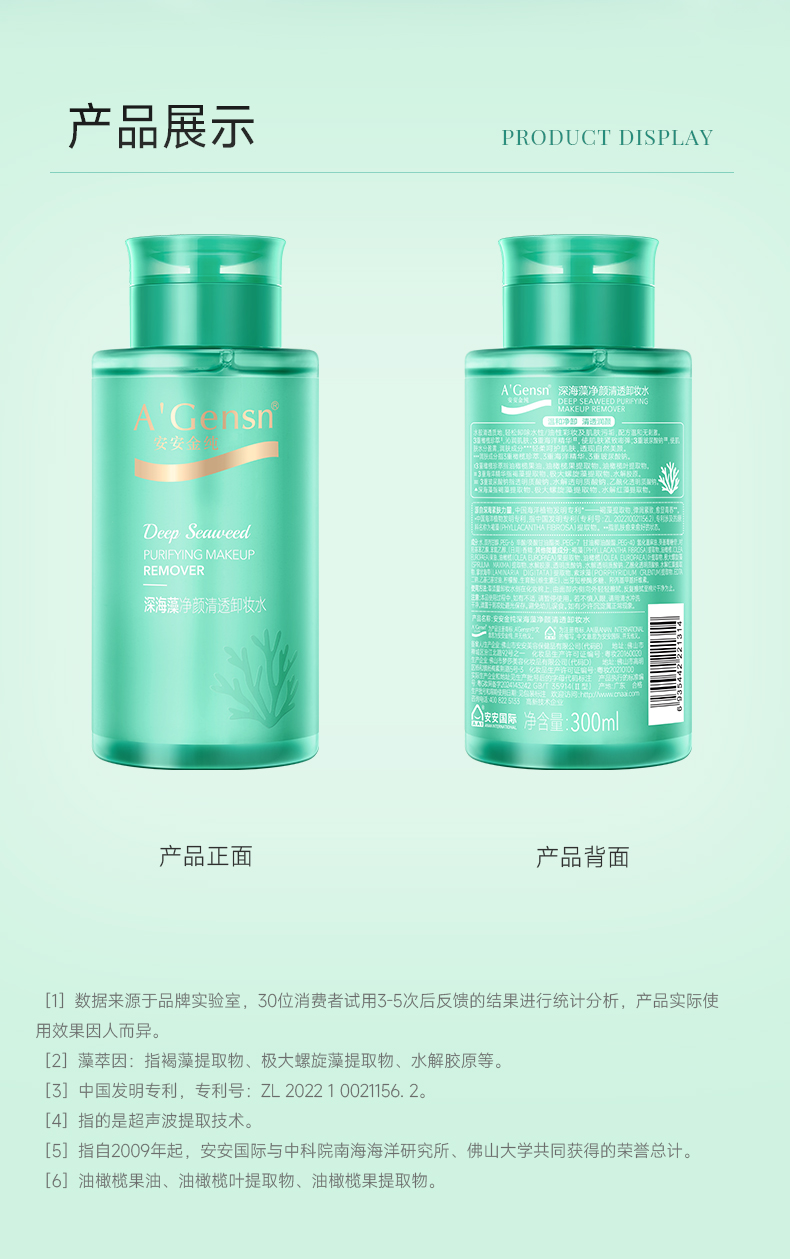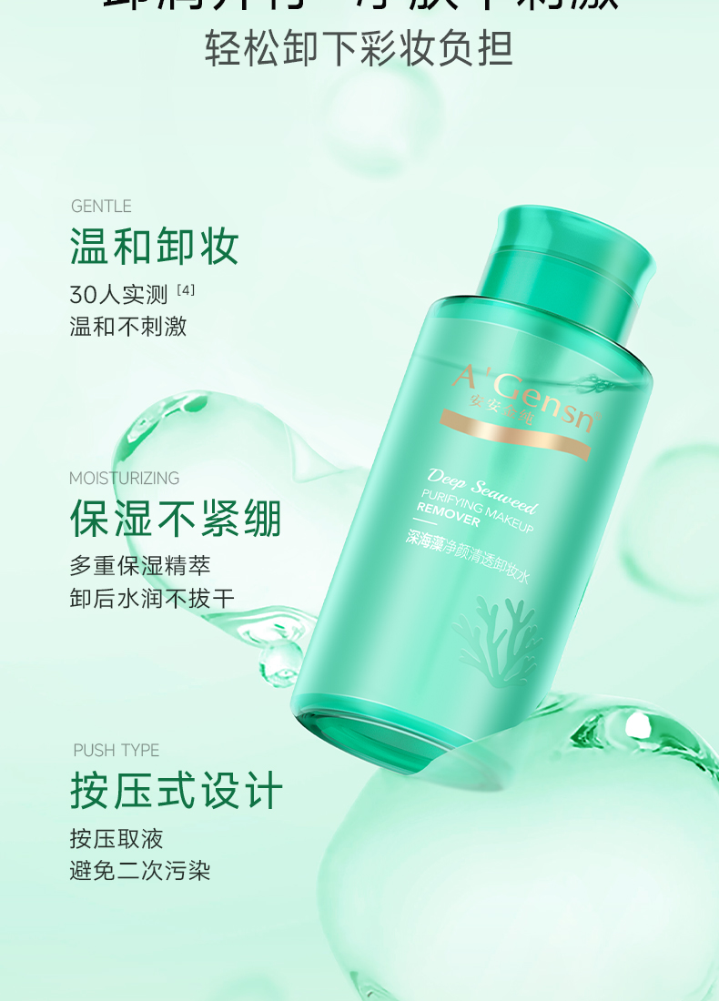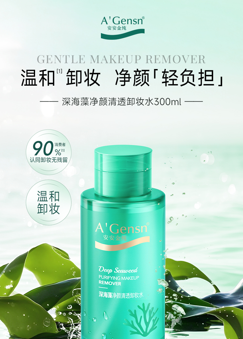 安安金纯深海藻净颜清透卸妆水300ml【龙菲精选】