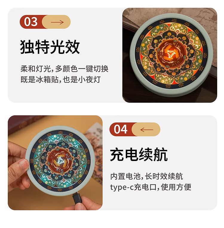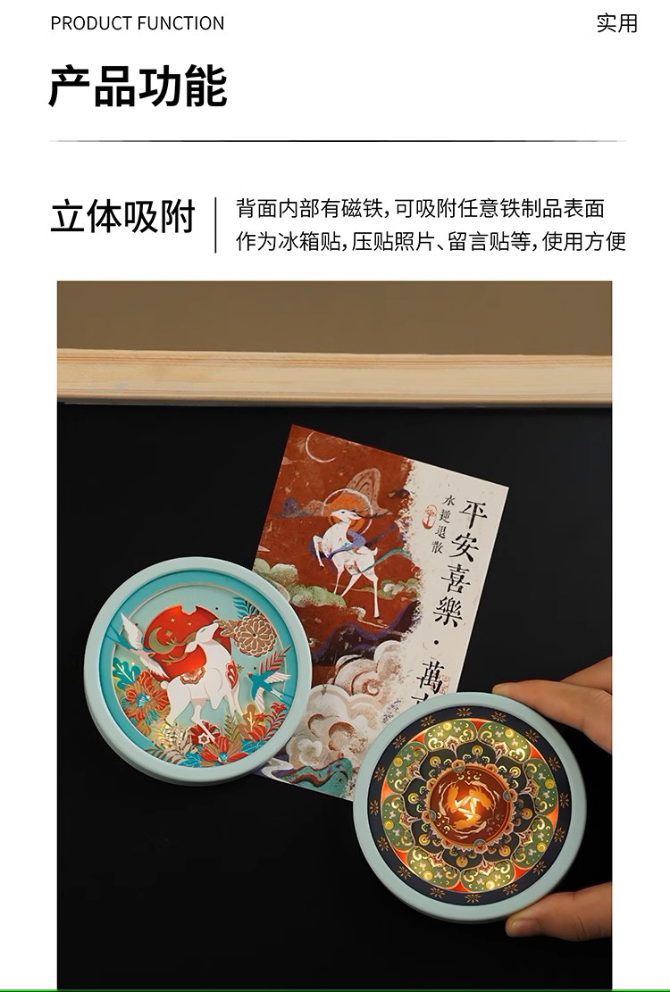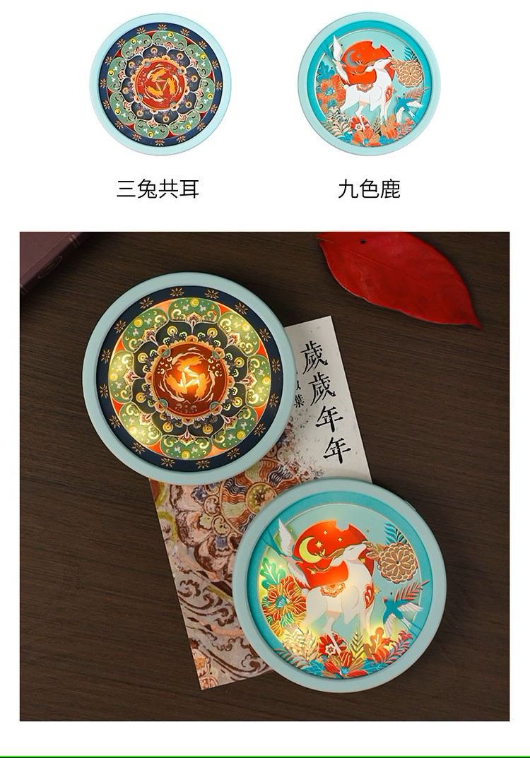 敦煌纸雕灯冰箱贴藻井三兔共耳九色鹿新款博物馆文创旅游纪念礼品