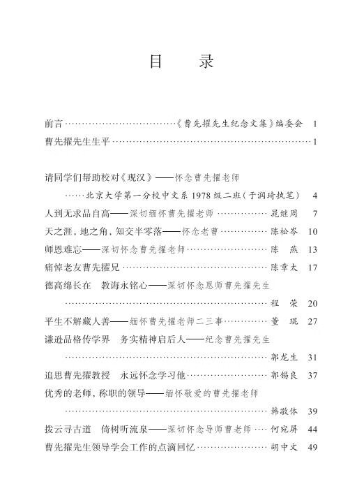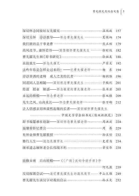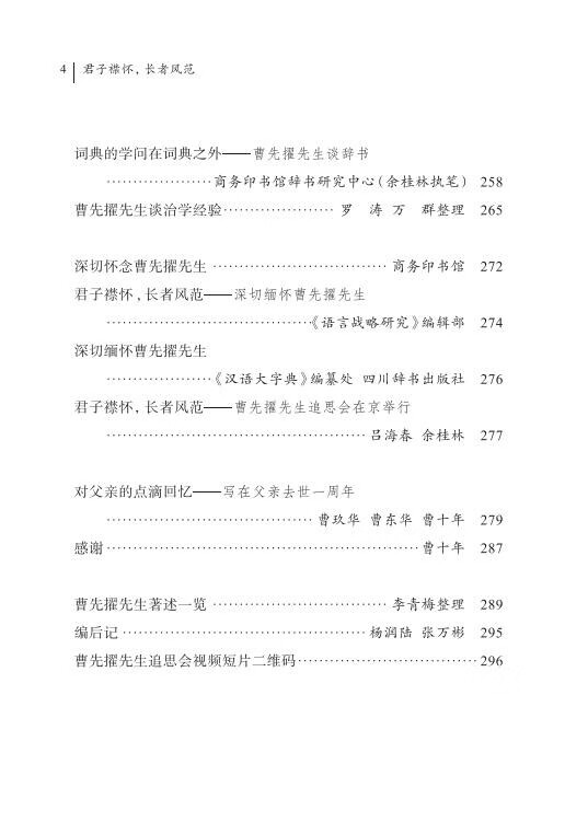 本文集收入纪念曹先擢先生的文章六十余篇,照片三十余帧,从不同方面、不同角度回忆了曹先生的一生,尊德性而道问学,求真守善,允执厥中,臻于生命之大美。希望这本文集能够帮助大家更全面地了解曹先生,并从中得到启示,学到他的智慧,发扬他的精神。