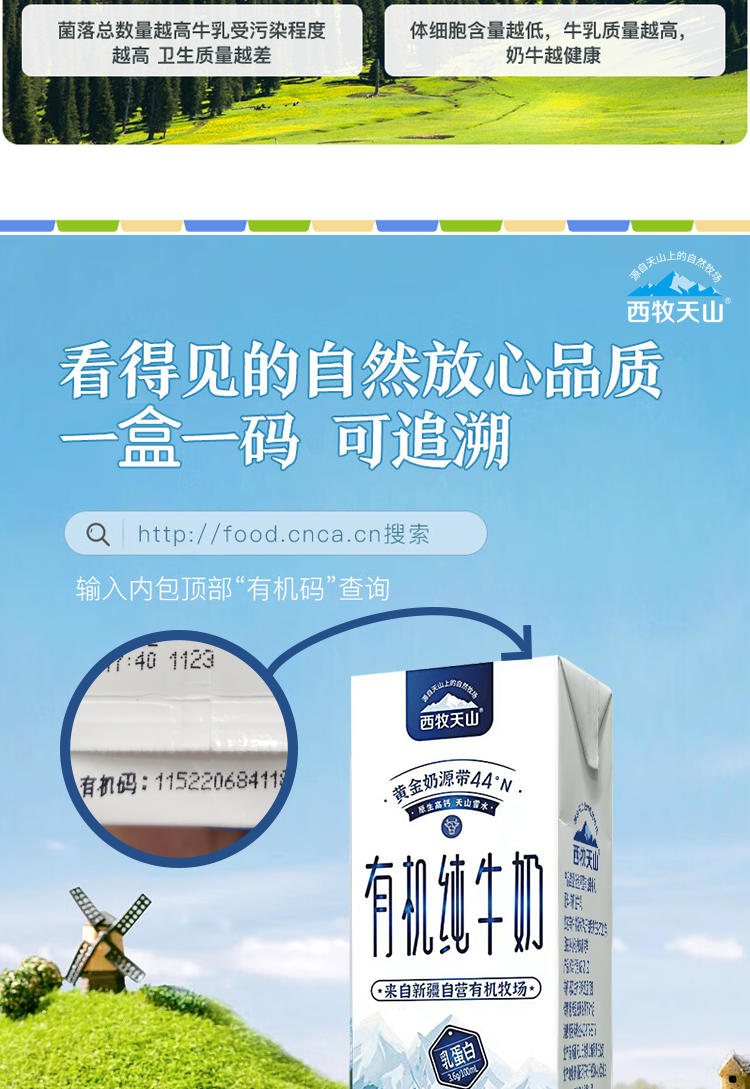 【疆品南下】西牧天山丨有机纯牛奶3.6蛋白 200ml*12盒