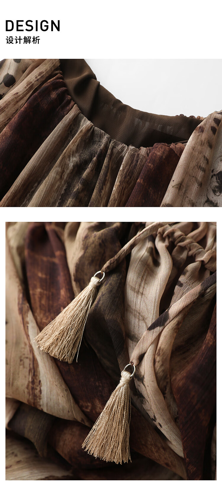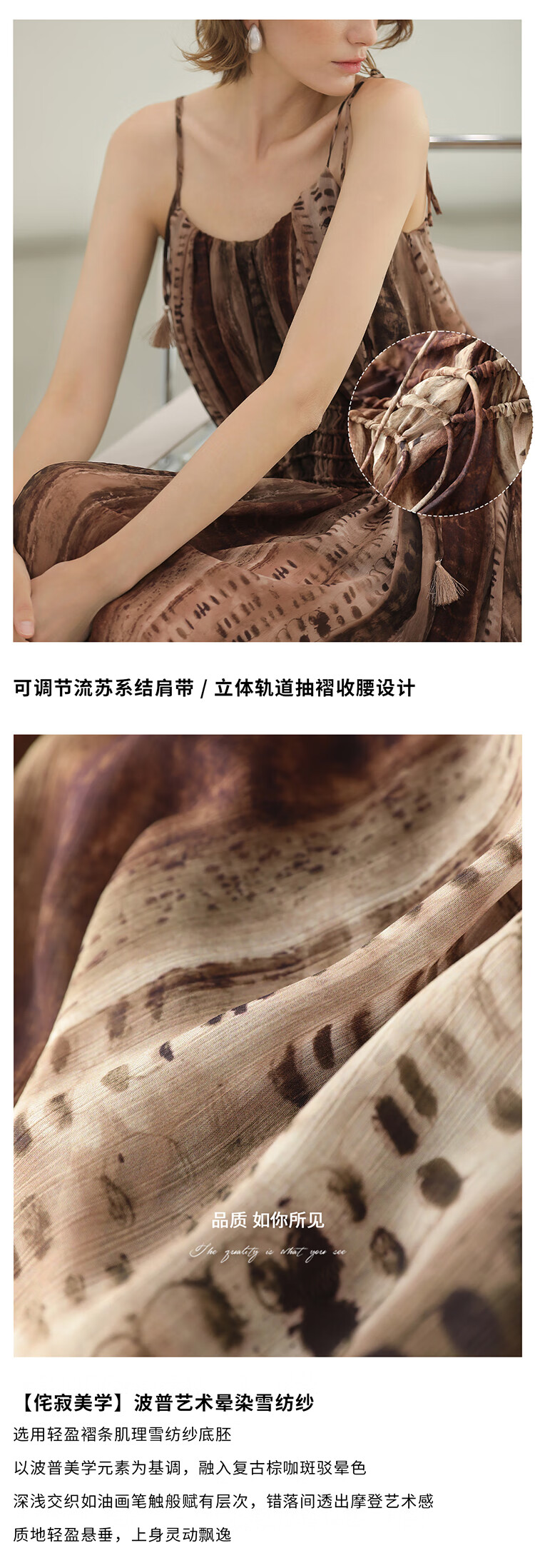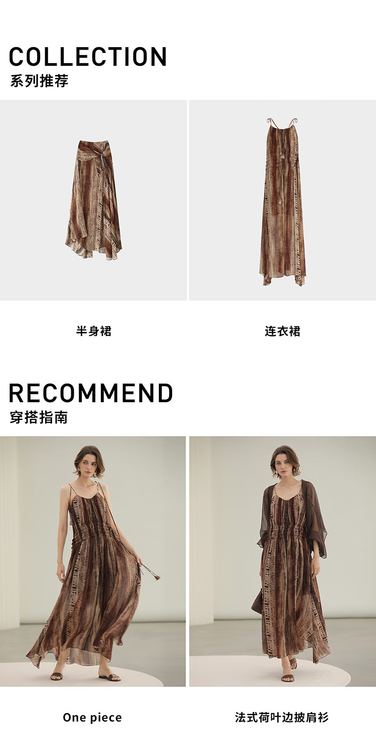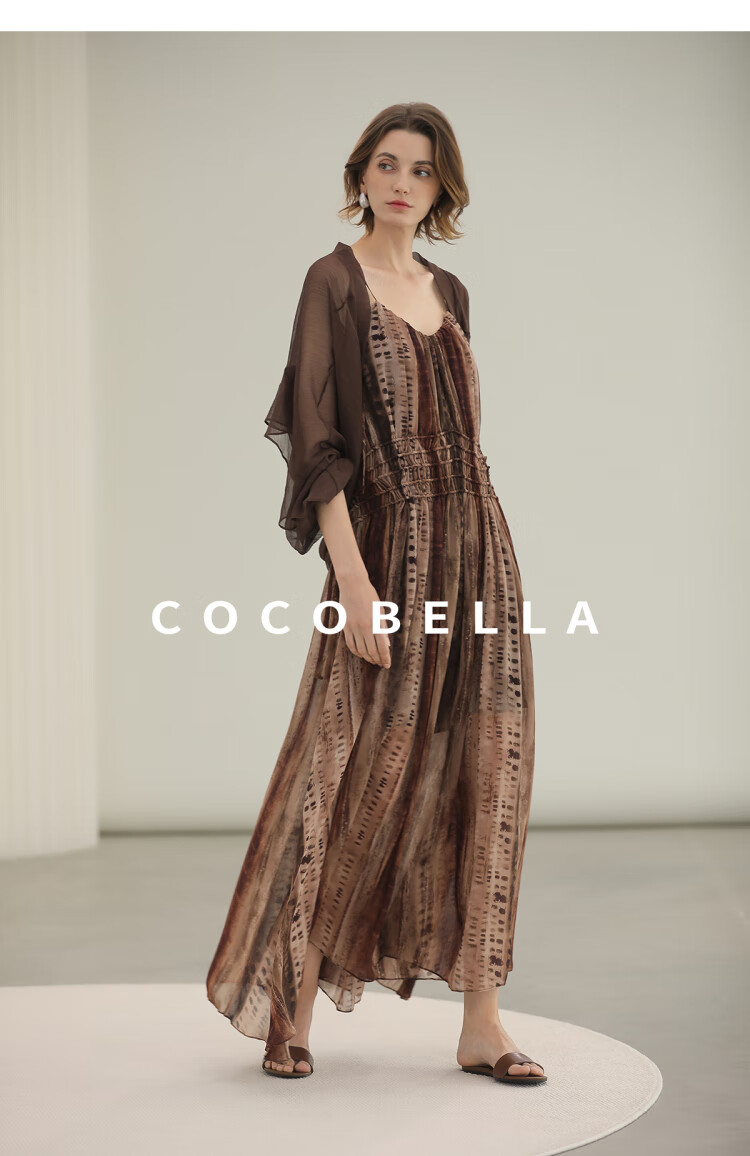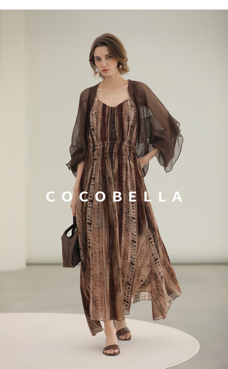 COCOBELLA[水彩摩卡]重工抽褶腰绳流苏度假吊带连衣裙FR3101
