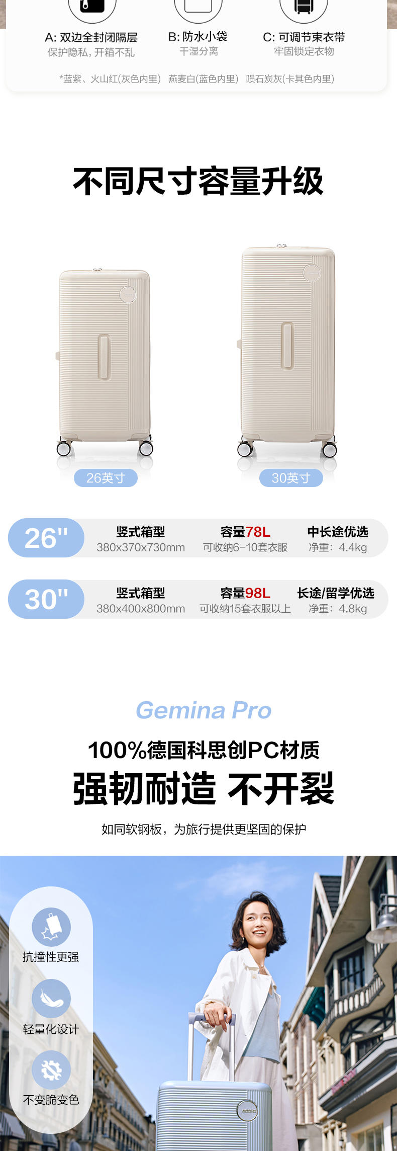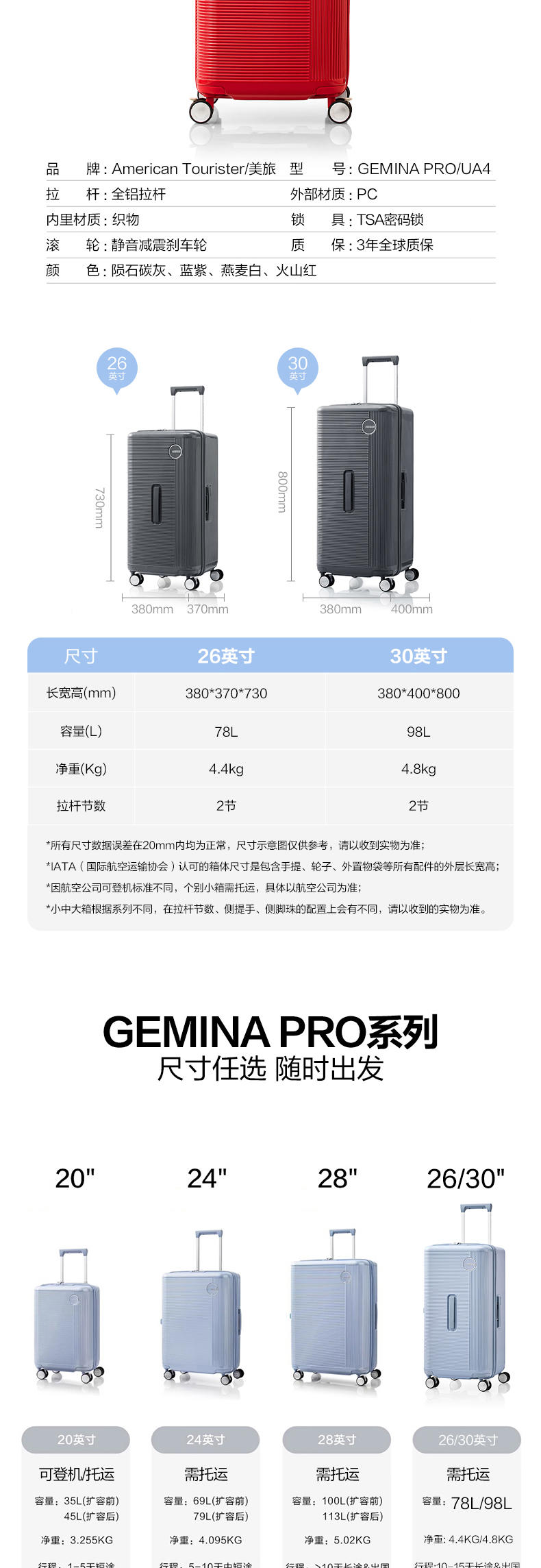 美旅 GEMINA PRO系列Trunk箱型PC材质时尚拉杆箱 UA4【男服】【广百百货北京路店】