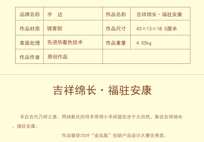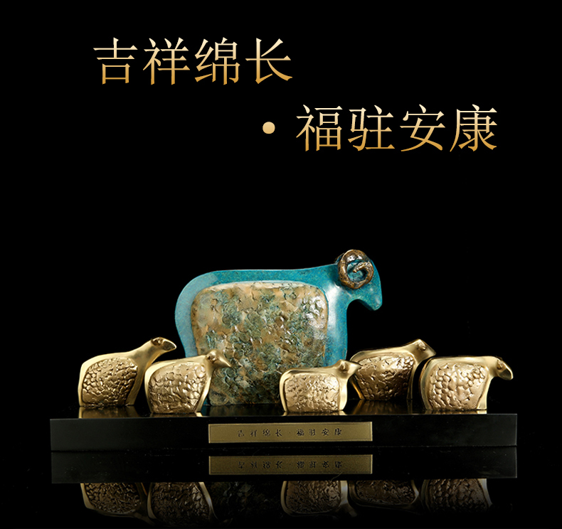 宇达青铜摆件 十二生肖羊《吉祥绵长·福驻安康》创意 装饰工艺摆件 高18.5cm