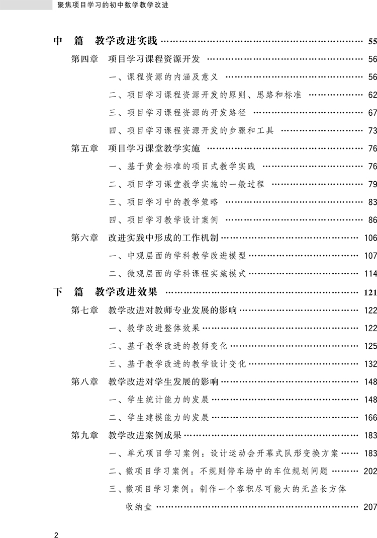 本书隶属于“基于证据的新课程教学改进丛书”,遵循教学改进基本规律,聚焦项目学习,围绕教学改进设计、教学改进实践、教学改进效果三个方面阐述初中数学学科基于证据的新课程教学改进。在书稿中体现为上篇(教学改进设计)、中篇(教学改进实践)、下篇(教学改进效果)。上篇介绍选择教学改进主题的依据,改进主题的概念内涵及研究进展,改进课程设计等;中篇关注教学改进实践过程中的教学改进原则、整体思路、着力点等,为教学改进的可复制、可推广提供基础,具体为项目学习课程资源开发、项目学习课堂教学实施、改进实践中形成的工作机制三个方面;下篇呈现教学改进的效果,关注教学改进对教师专业发展的影响、对学生发展的影响,呈现了部分教学改进案例成果。本书不仅为初中数学教师提供了系统的教学改进框架,还试图通过丰富的案例分析和数据支持,助力教师提升教学实践能力,发展学生核心素养,推动数学课堂向更高效、更创新的方向发展。