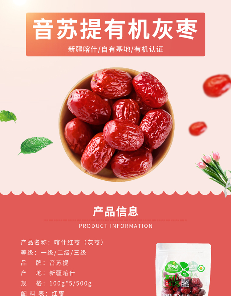 【音苏提】有机灰枣500g免洗休闲零食新鲜袋装新疆喀什特产大红枣