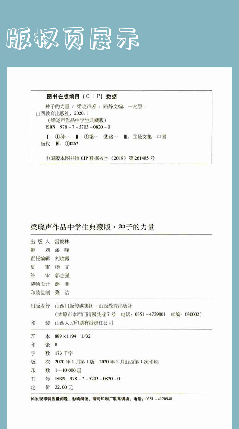 正版 梁晓声作品 种子的力量 中学生典藏版 山西教育出版社出版