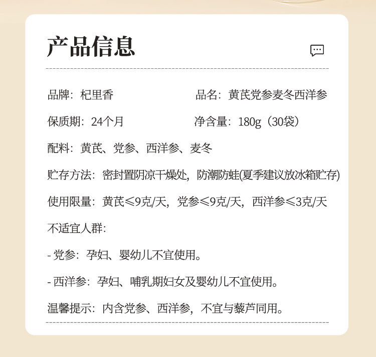 杞里香180g盒装黄芪党参麦冬西洋参组合长白山5年足龄老参切片3年粗壮切片黄芪岷县道地党参四川4-5月当季麦冬元气四宝